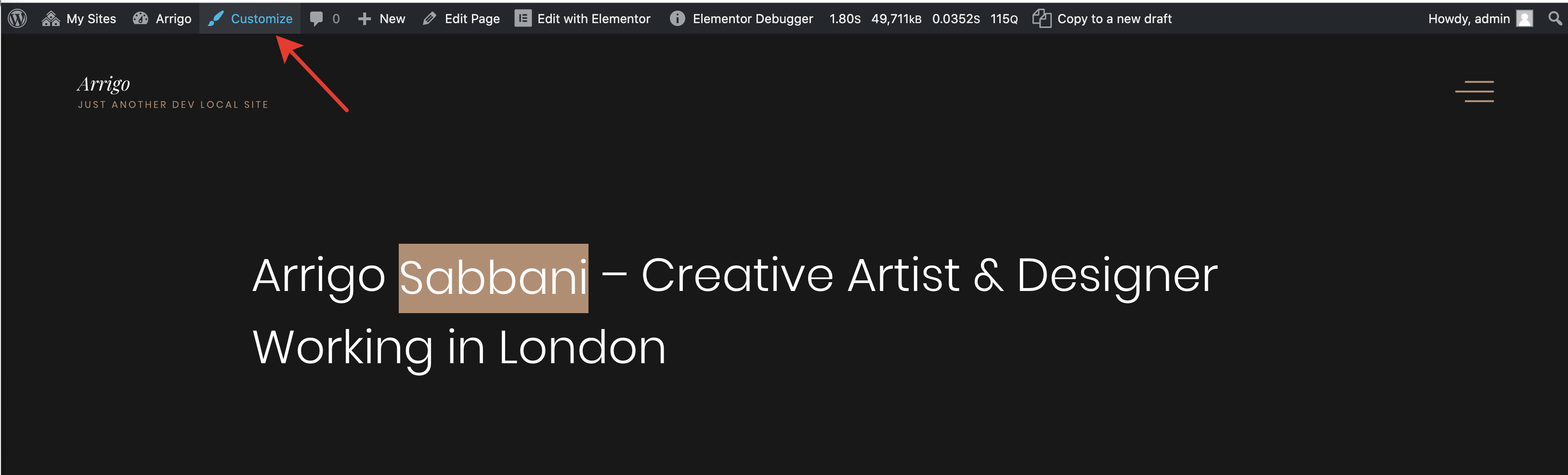 Being logged in to WordPress as an administrator, go to your site front-end and click Customize.