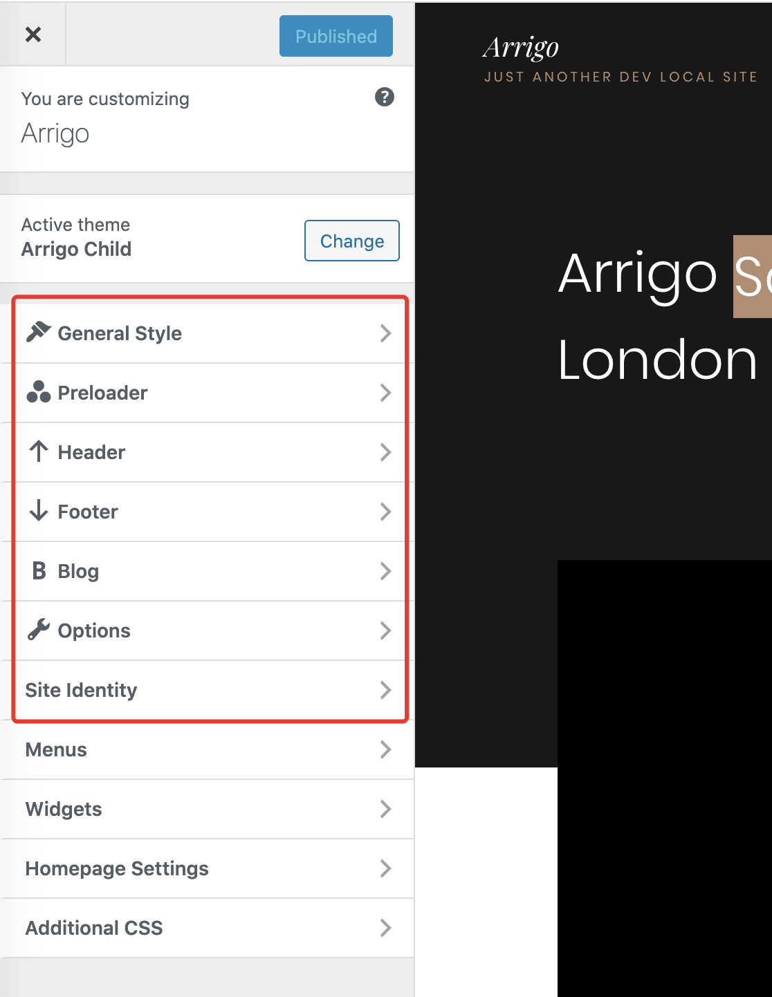 If you don’t have those additional theme panels like in the screenshot above, please check if you have the Kirki Plugin (opens new window) installed and activated. It’s required by the theme and is in charge of extending the WordPress Customizer panel.