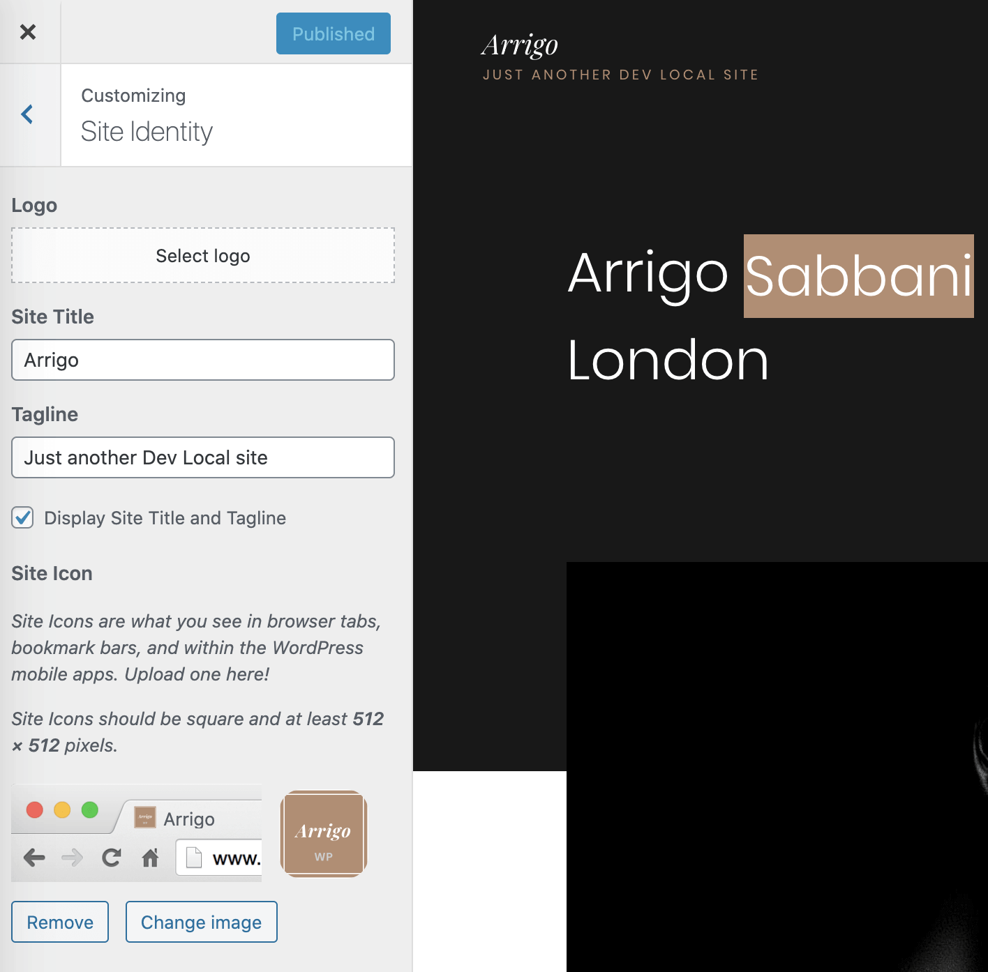 Select Logo and upload your logo to WordPress media libraryOnce the logo is uploaded, you will have some more options available.