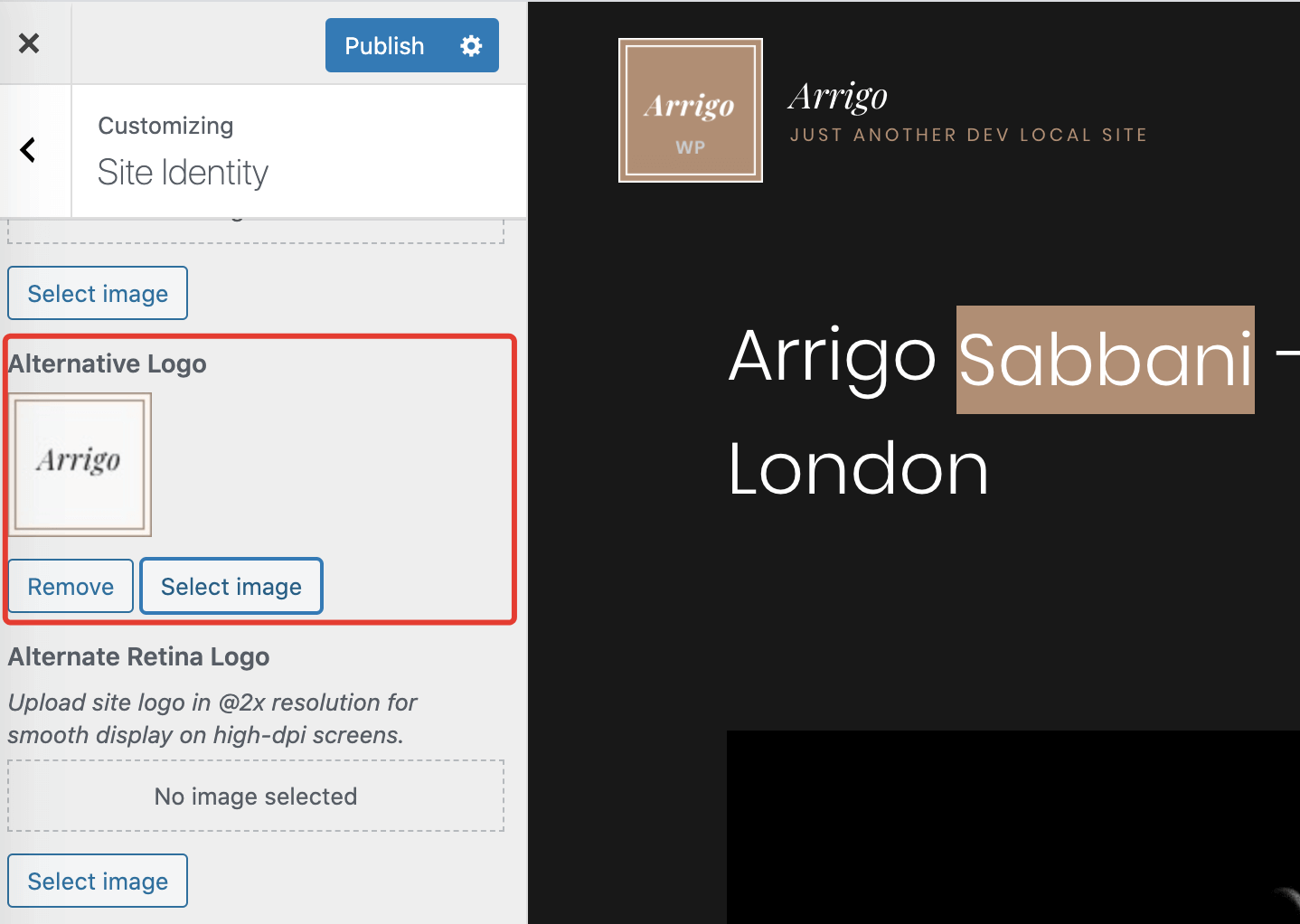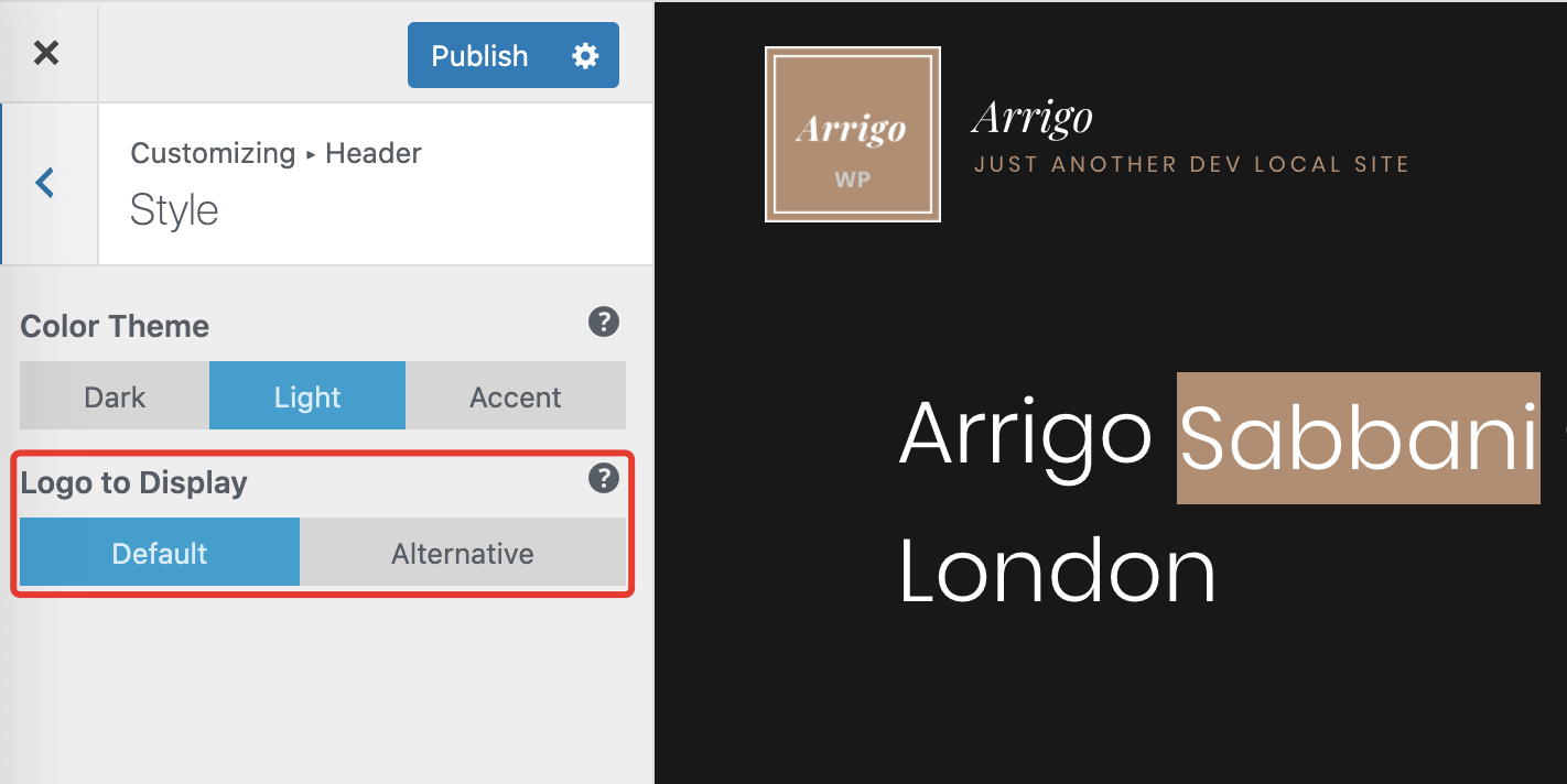 Luckily, you can upload an alternative logo version. You can do this in the same Site Identity panel in Customizer.