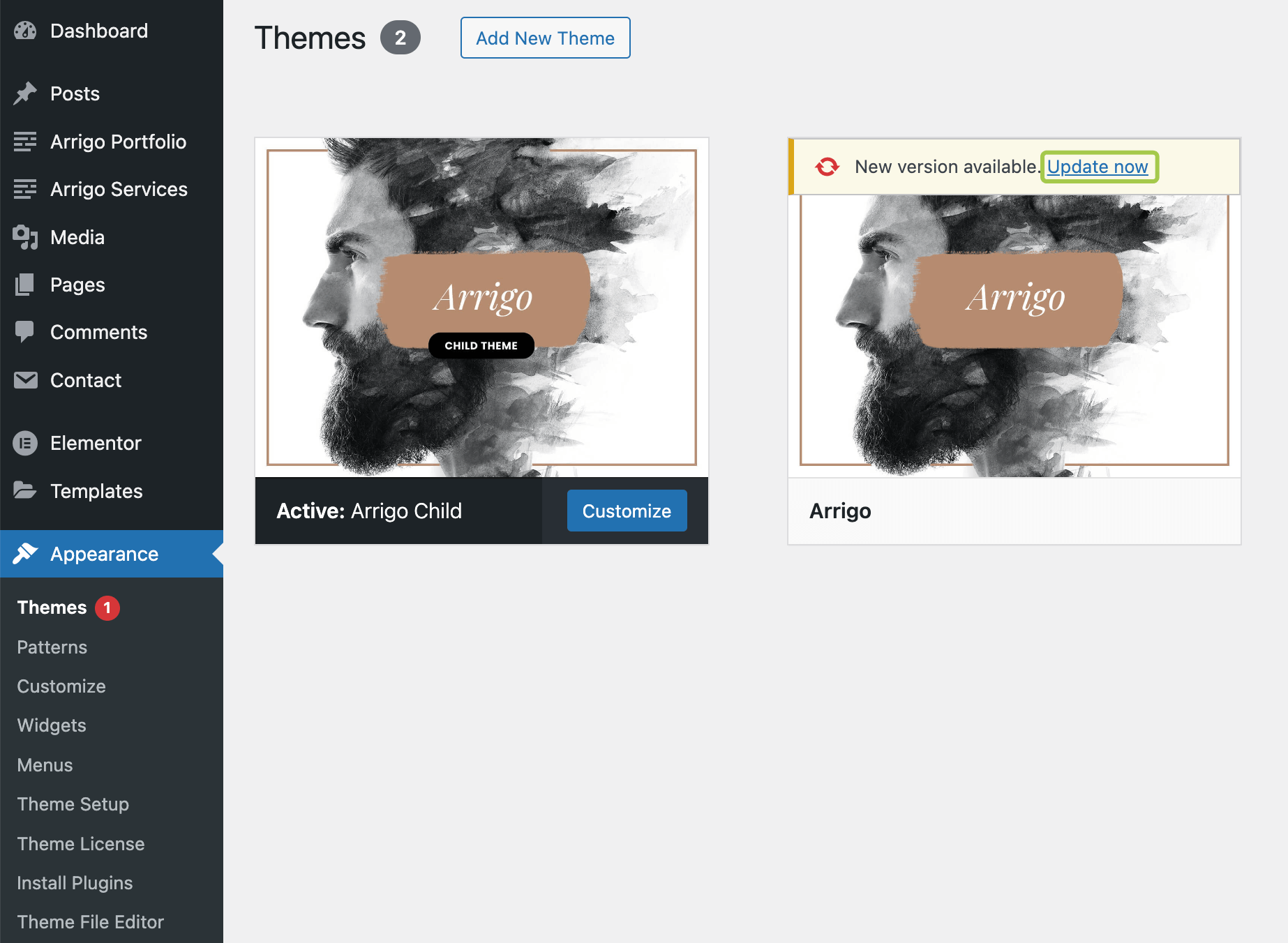 Once the license is activated, you'll receive notifications for theme updates directly in your WordPress panel: