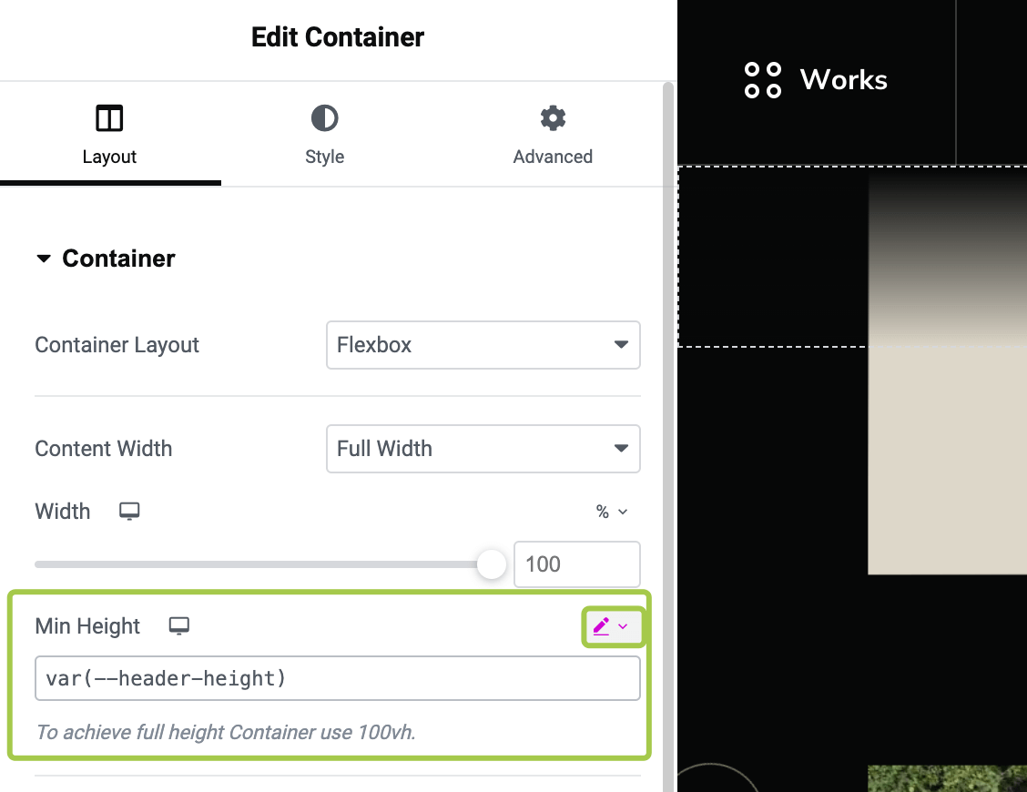 For complex layouts with calculated formulas, you can directly use the CSS variable var(--header-height, 0px) in your calc expression wherever Elementor has that input field.