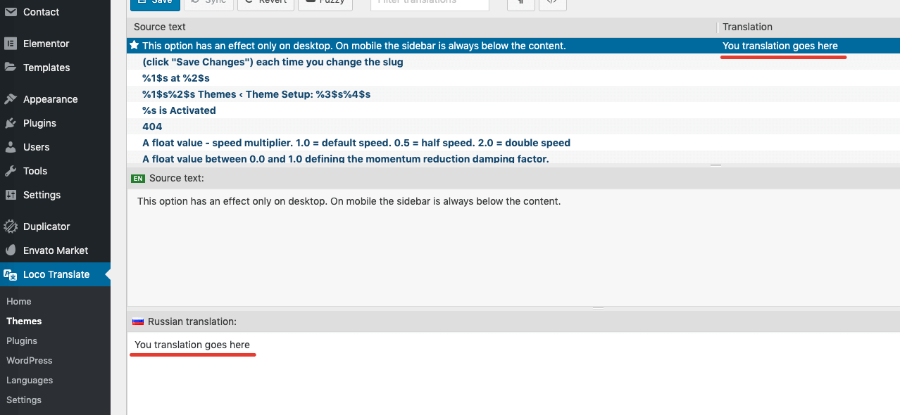 Your brand-new theme is fully translatable to other languages. For convenient translation, I recommend installing the Loco Translate (opens new window) plugin. Itβs available for free and allows you to translate your theme right from the admin panel.