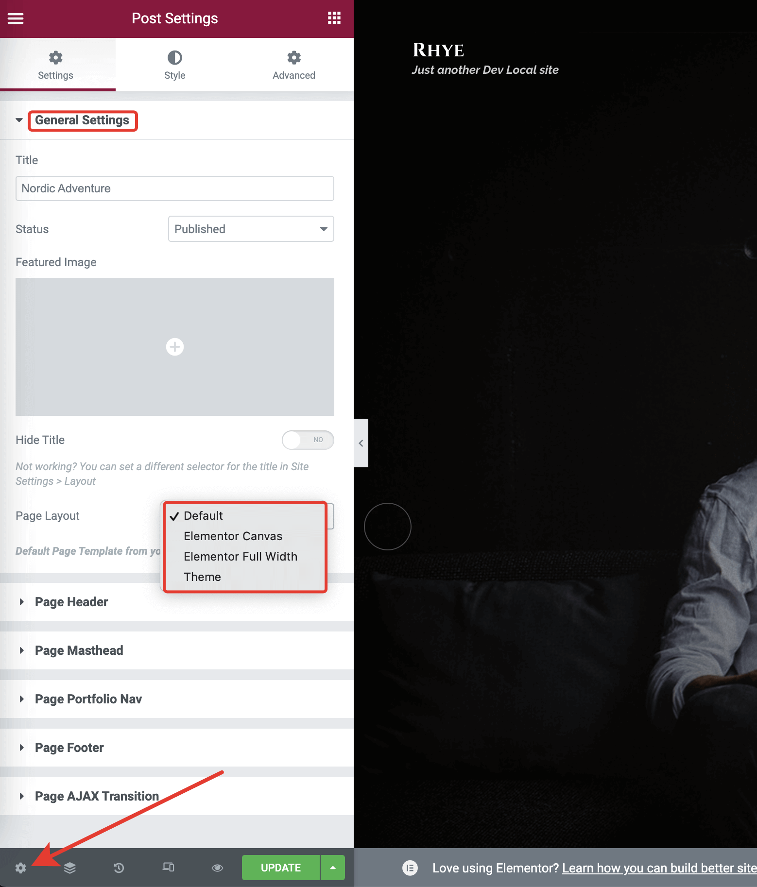 Elementor offers a set of three useful templates for pages, allowing you to customize the layout for specific pages. For example, you can easily remove the page masthead while keeping the header, content, and footer using the Full Width template.