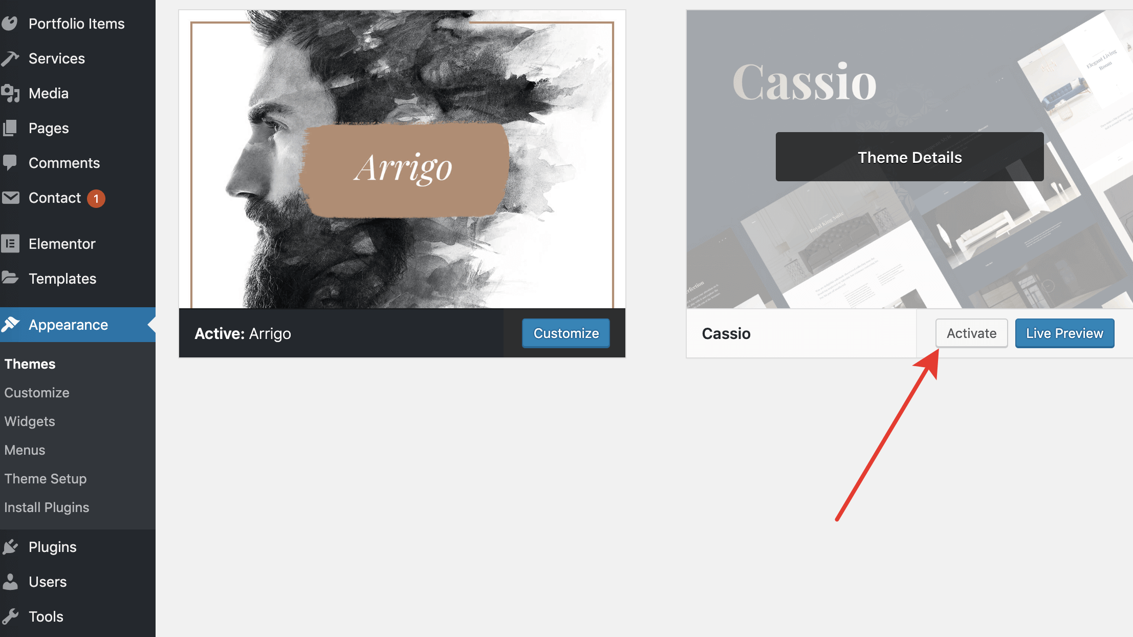 Once the installation is complete, your brand new theme is ready to use. Let’s activate it. To do so, go to Appearance → Themes.