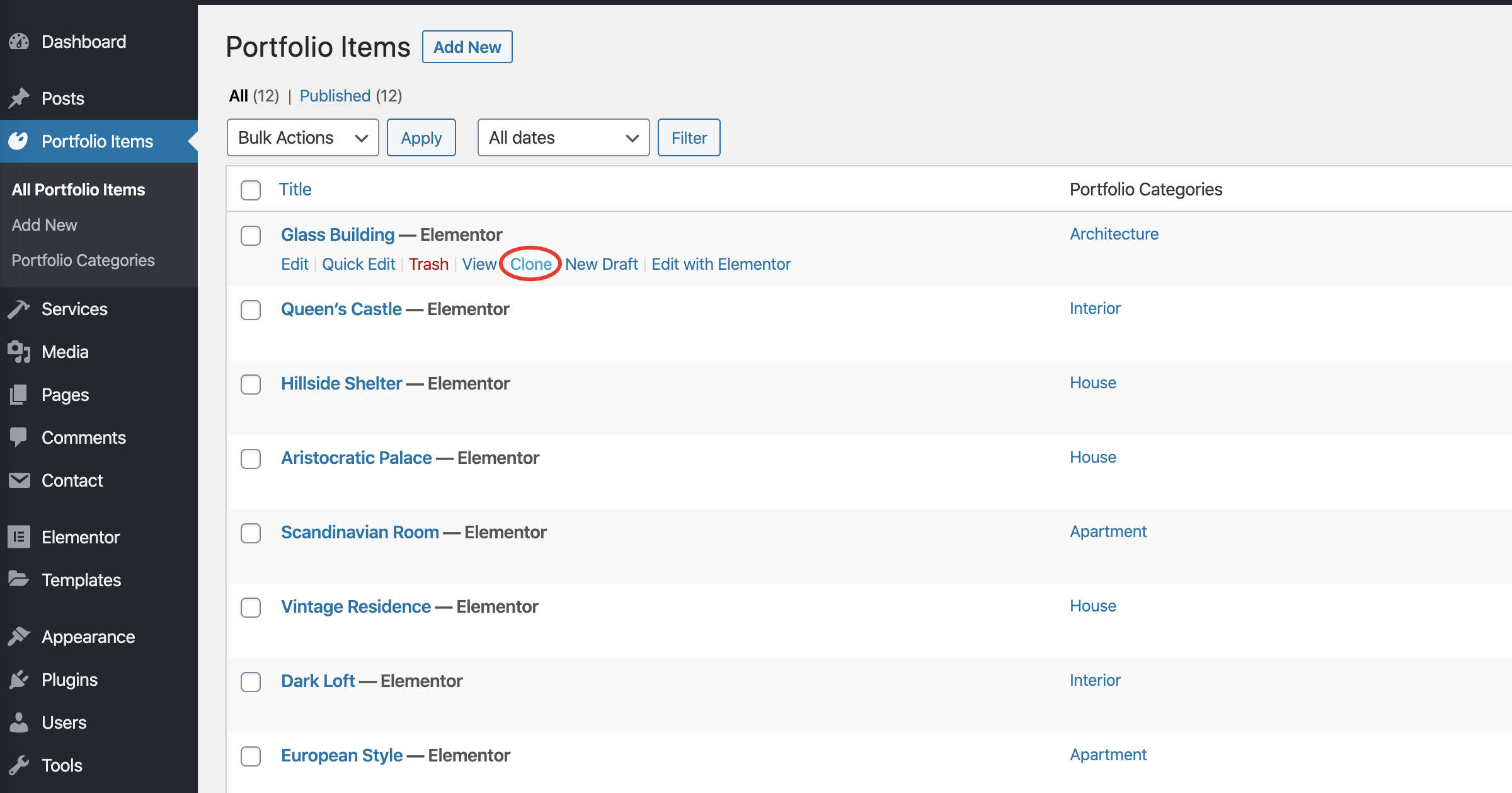 You will get a new action Clone under the posts you've allowed to clone in the first step.
