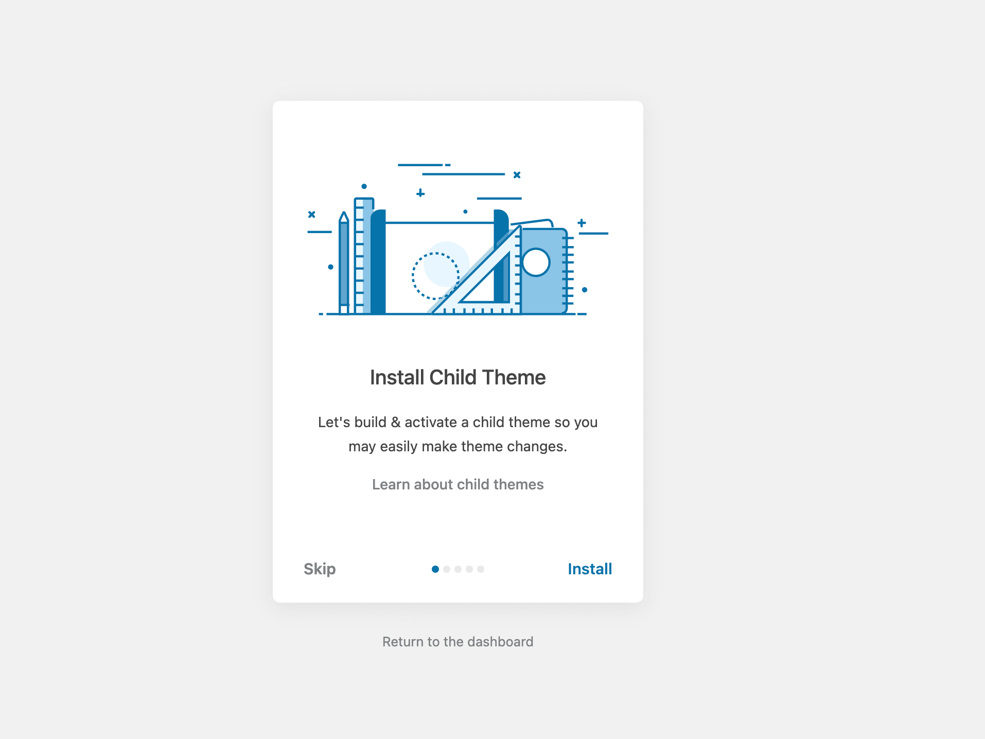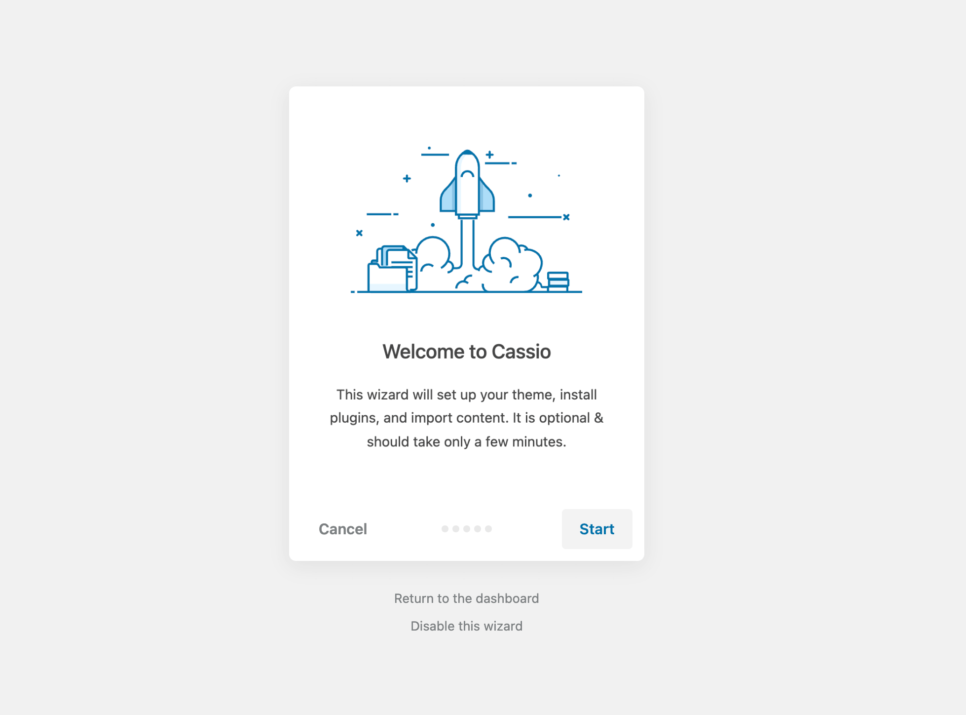 After the first theme activation, you should see a simple wizard that will help you with the initial theme setup. Simply follow all the steps by clicking the Next button. After going through all the steps, you will be ready to use your brand new website.