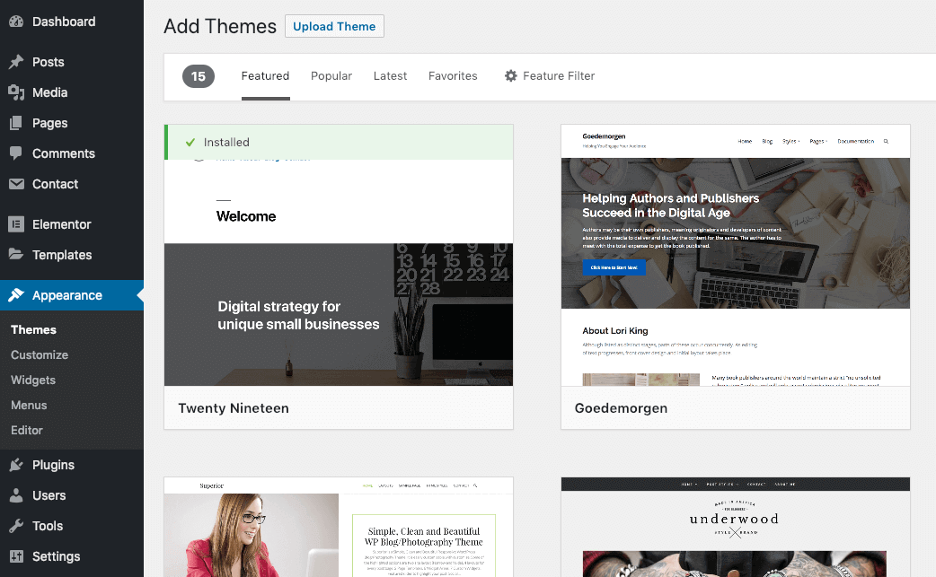 In the WordPress panel, navigate to Appearance → Themes and click Add New.