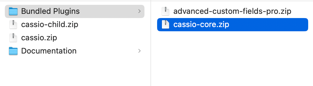 Unzip the downloaded archive. In the 📁 Bundled Plugins folder, locate the 📄 cassio-core.zip archive.