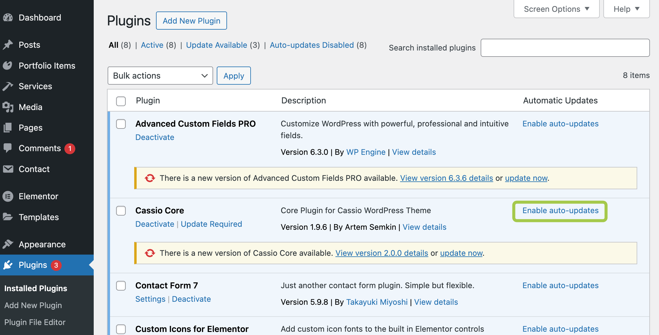 To ensure compatibility with the latest WordPress and the theme, it's recommended to turn on automatic updates for the core plugin: