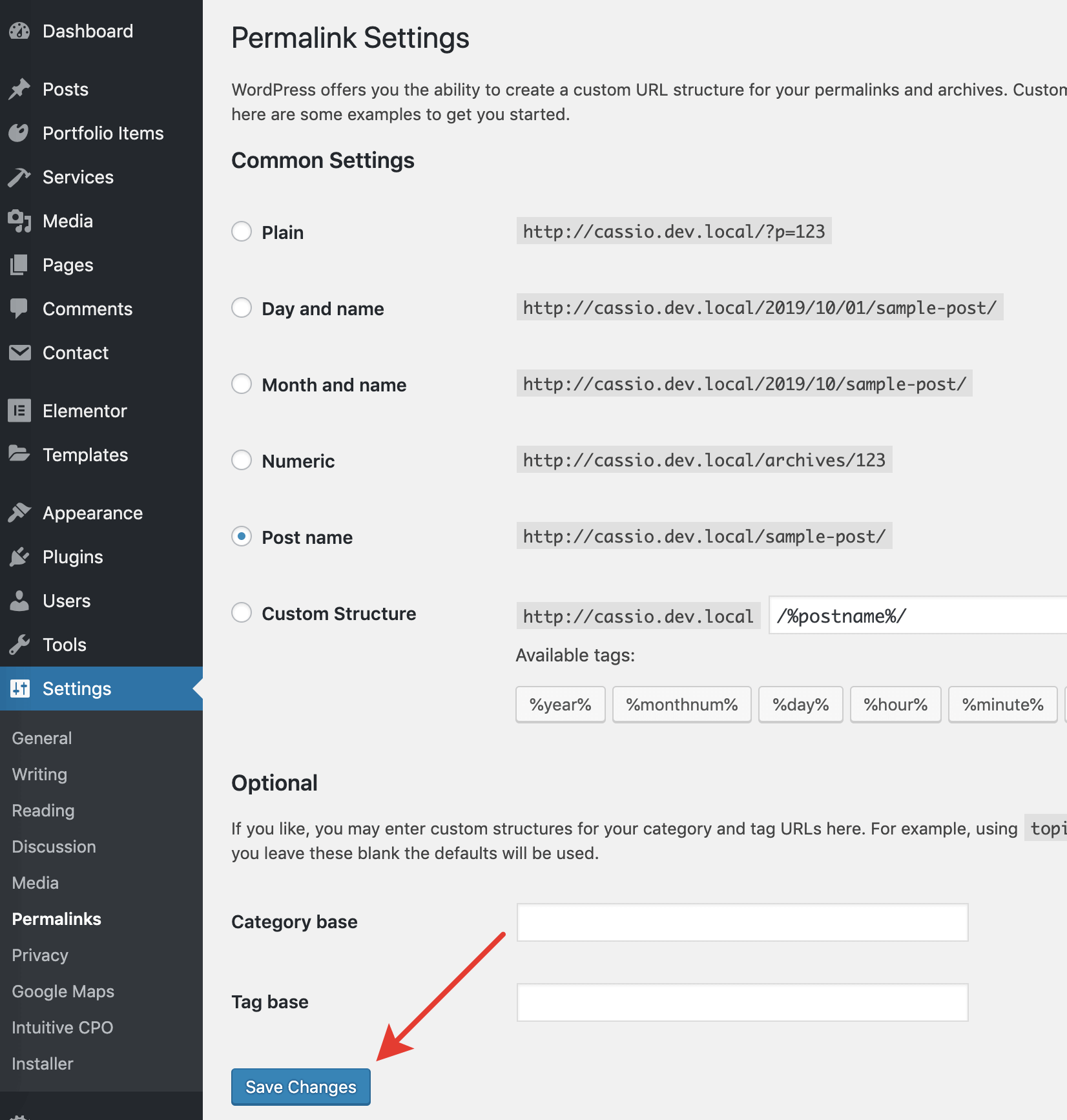 After you're done, you will need to update the website permalinks. Otherwise, you may get 404 errors on your pages. To update permalinks from the admin panel, go to Settings → Permalinks and simply click Save Changes – no need to change anything.