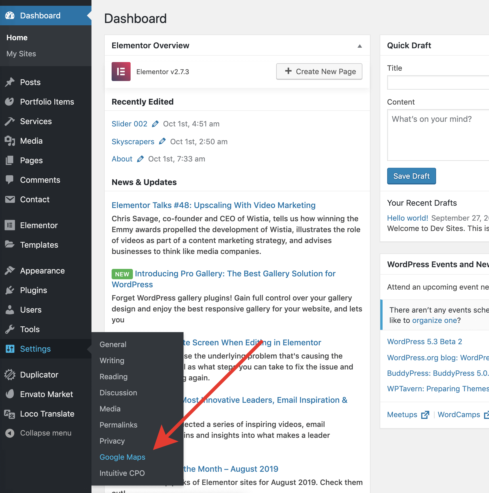 From the admin panel, go to Settings → Google Maps.