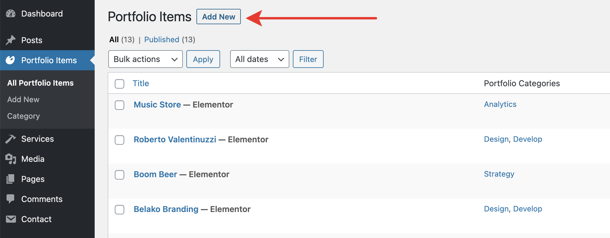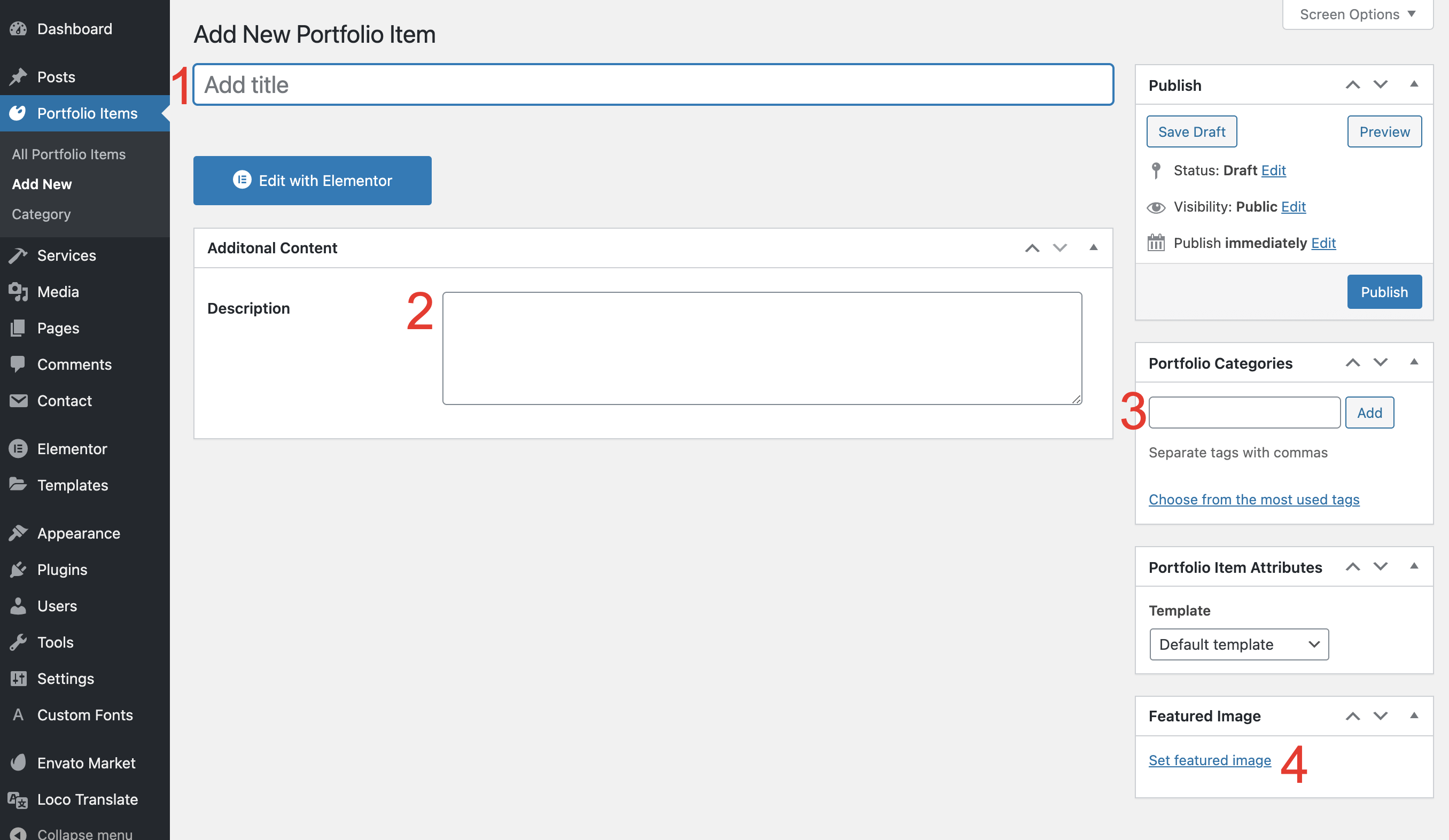 Go to Admin Panel → Portfolio Items and click Add New.
