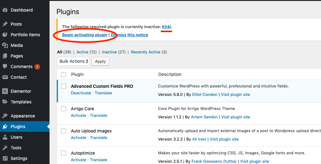 If you don’t have those additional theme panels like in the screenshot above, please check if you have the Kirki Plugin (opens new window) installed and activated. It’s required by the theme and is in charge of extending the WordPress Customizer panel.