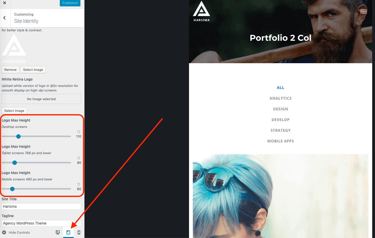 If you scroll down the panel in Customizer, you will see more options where you can limit the logo's maximum height for different resolutions. This may be useful if you have a large logo on desktops but want to make it smaller on mobile devices where there is less room for big elements.
