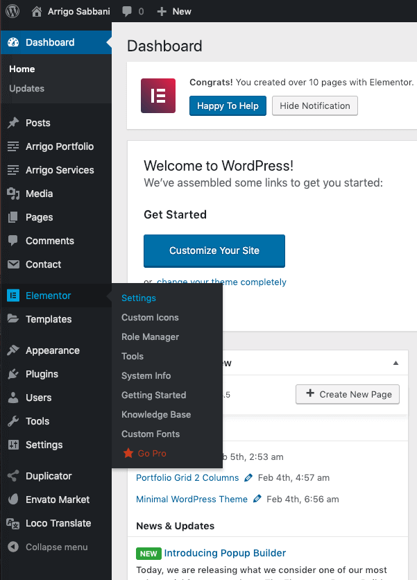 Elementor → Settings menuMissing `Elementor` menu?