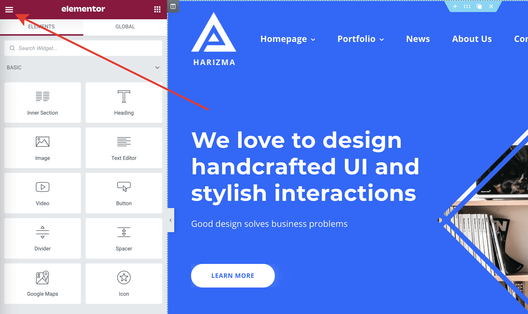 Now let's return to the site frontend and enter Edit with Elementor mode on any page.