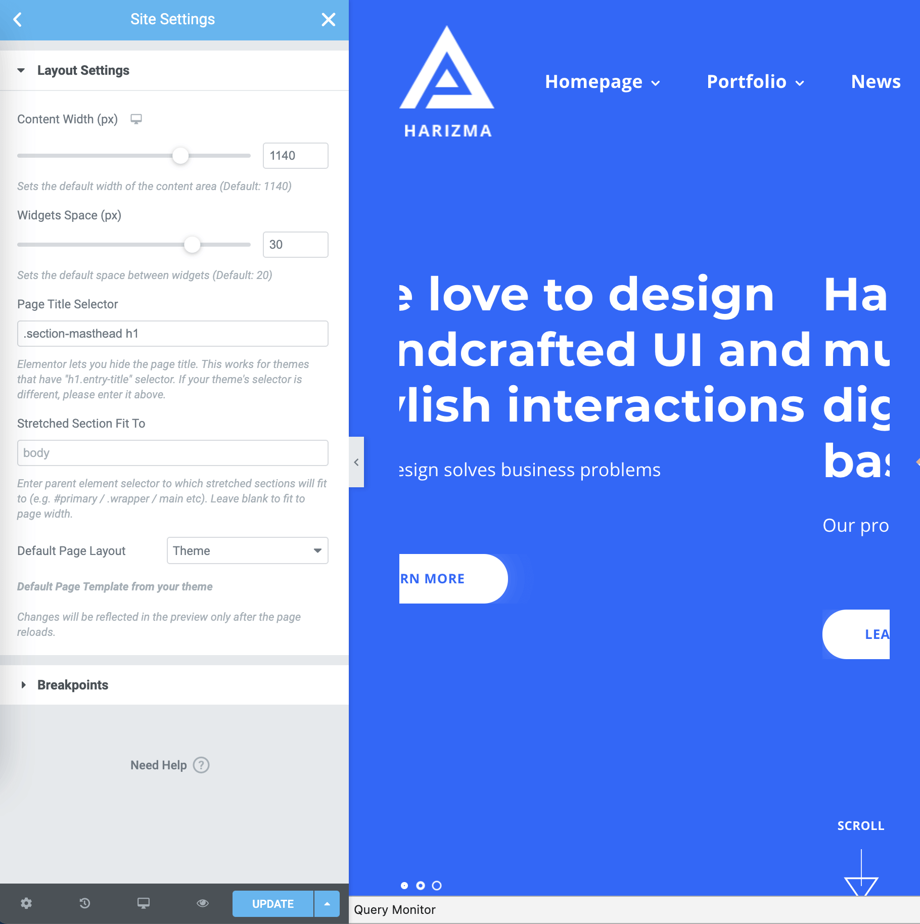 The theme is powered by a modern frontend page builder called Elementor (opens new window). If you’re not familiar with it, don’t worry, we will make the first steps together in the next sections. For now, let’s do the initial Elementor setup to achieve the best design results using the theme.