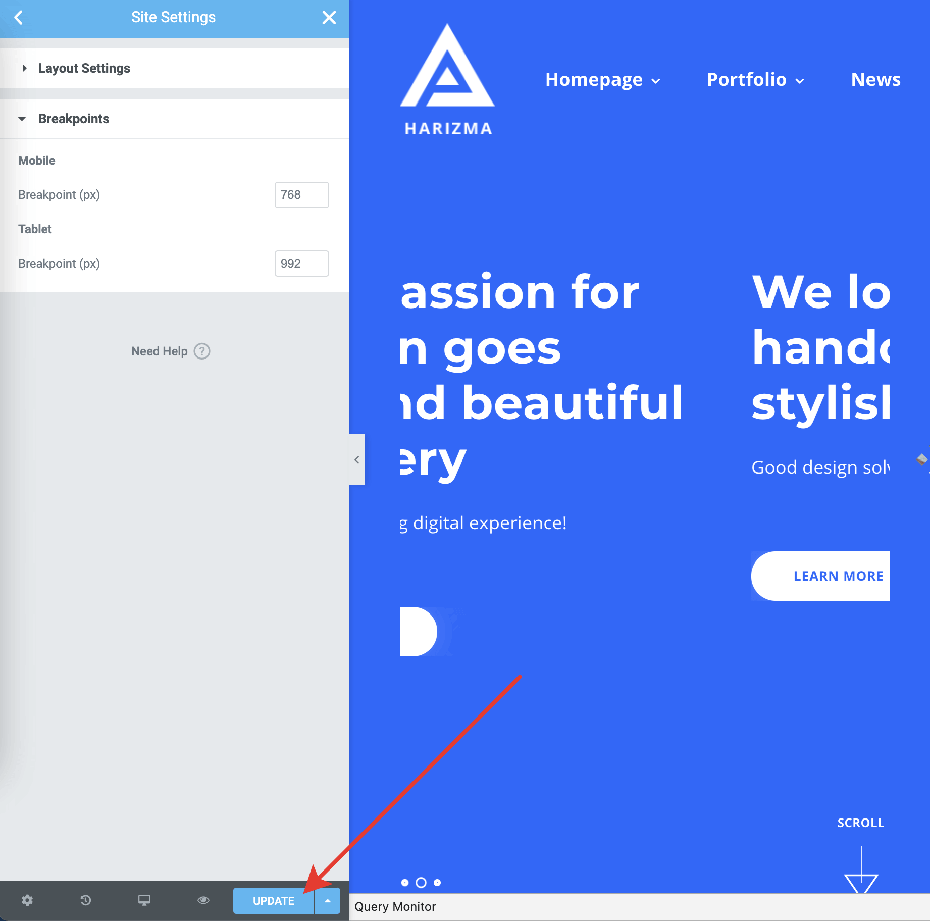 - Tablet Breakpoint – 992
