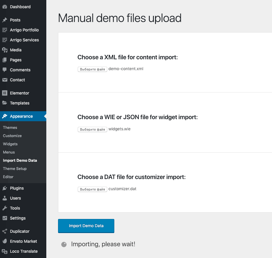 Now wait until the demo import is finished. Don’t close or refresh this page during the active import process!