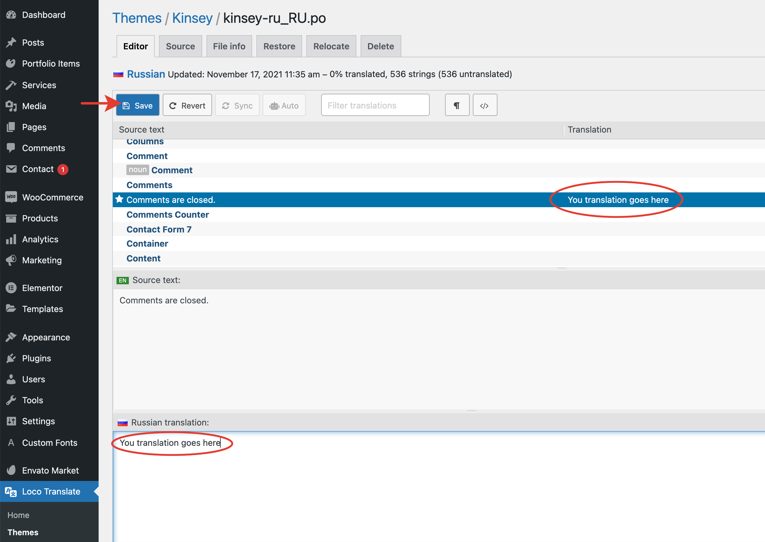 Your brand-new theme is fully translatable to other languages. For convenient translation, I recommend installing the Loco Translate (opens new window) plugin. Itβs available for free and allows you to translate your theme right from the admin panel.
