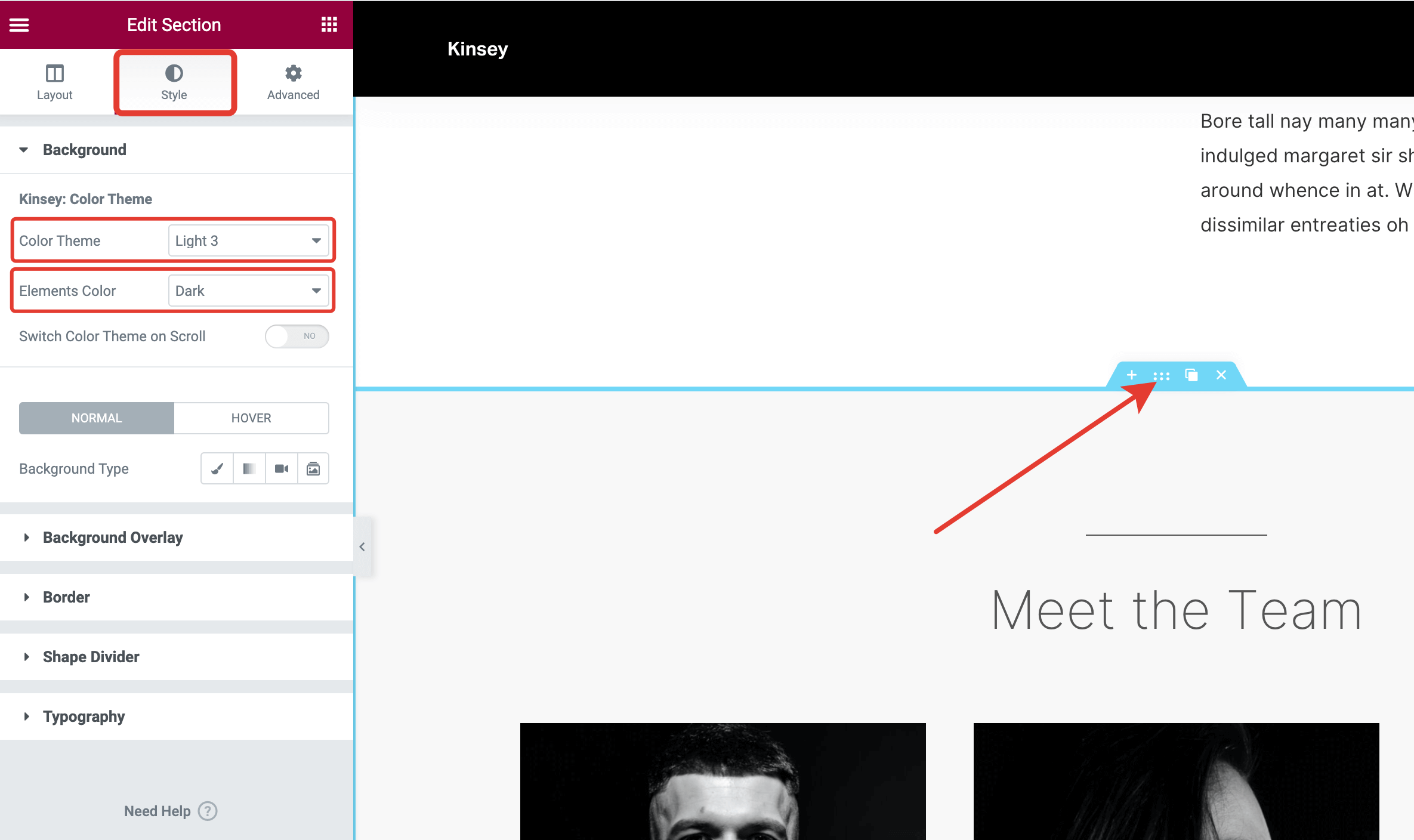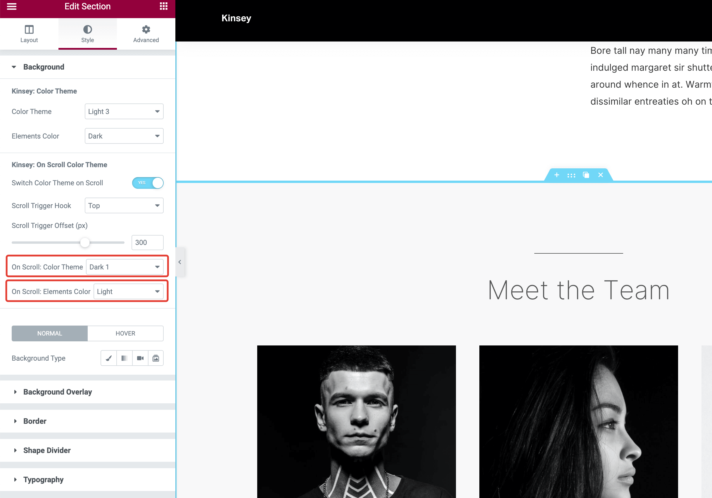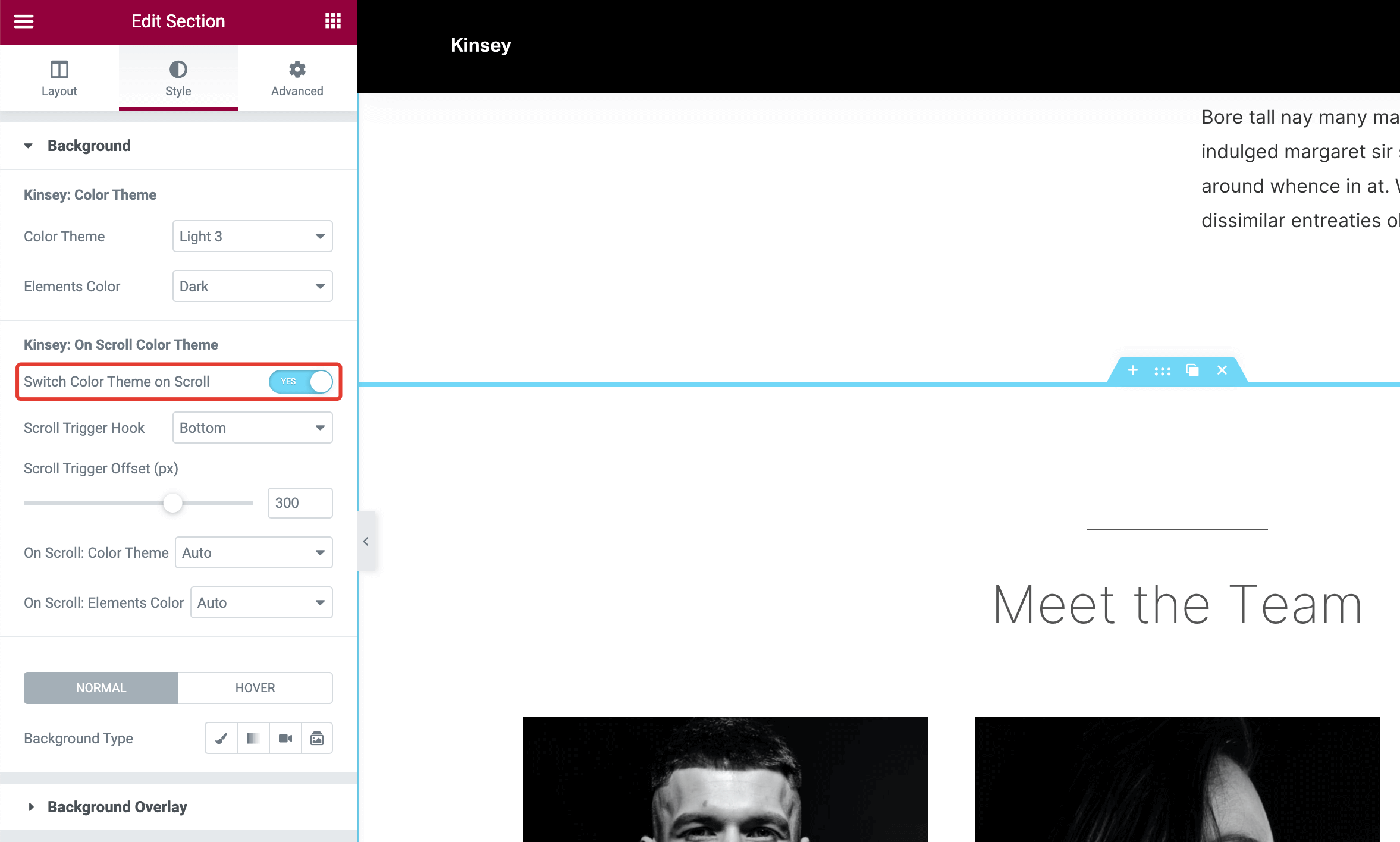 Choose a color theme you'd like to apply to the section on scrolling.