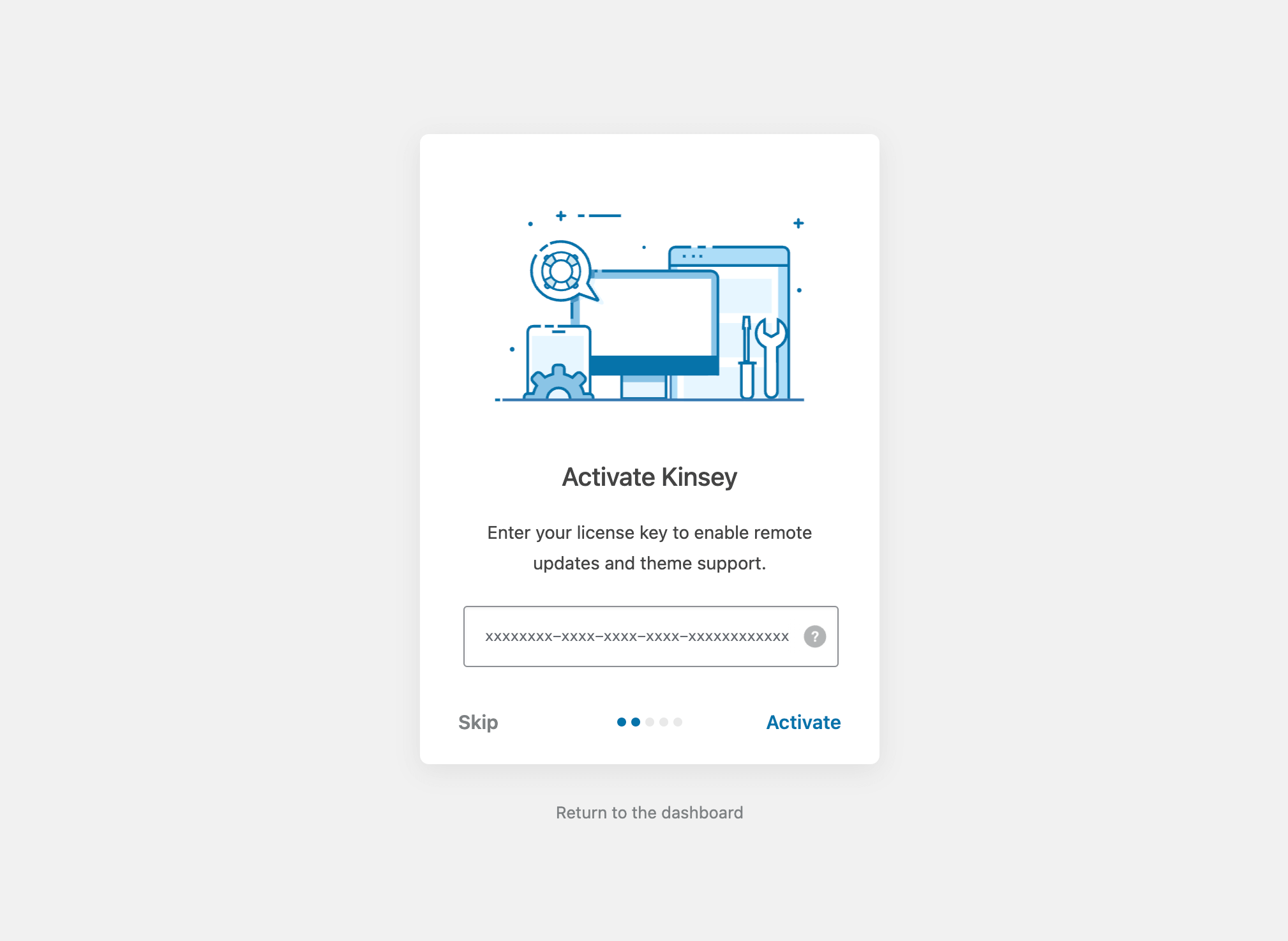 If you don't have a purchase code (e.g., if you licensed the theme via Envato Elements), it's never too late to obtain one from Envato Market: Kinsey – AJAX Agency WordPress Theme (opens new window). When the purchase code is activated, you'll benefit from: