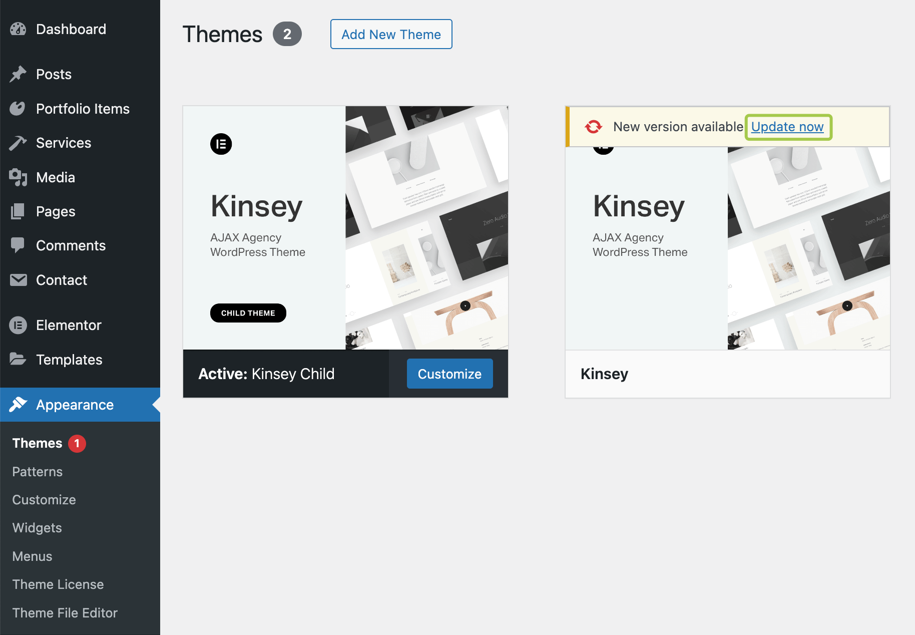 Once the license is activated, you'll receive notifications for theme updates directly in your WordPress panel: