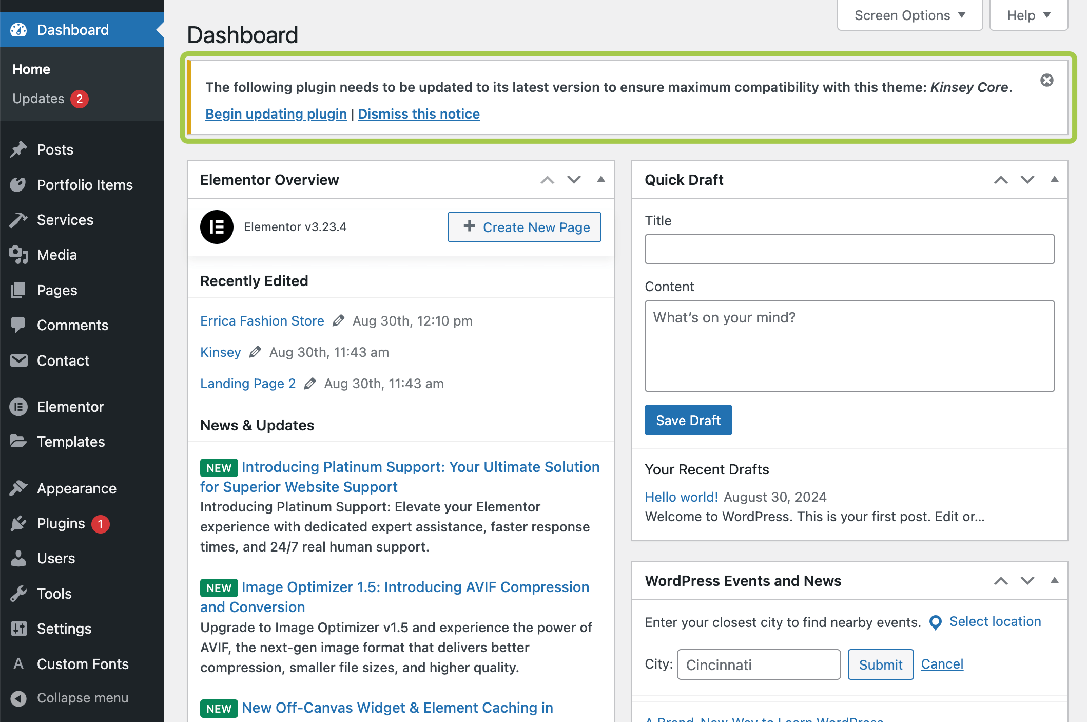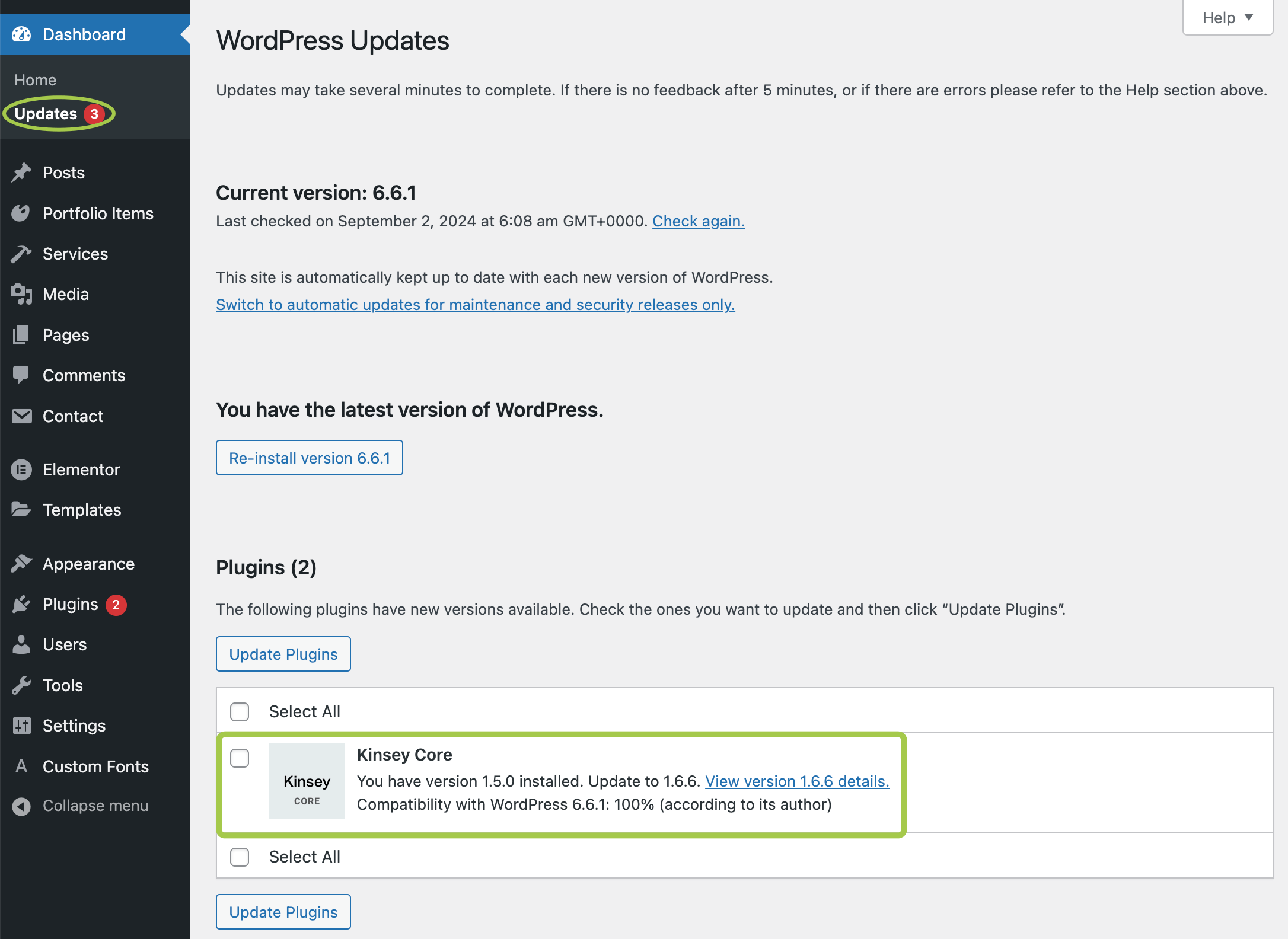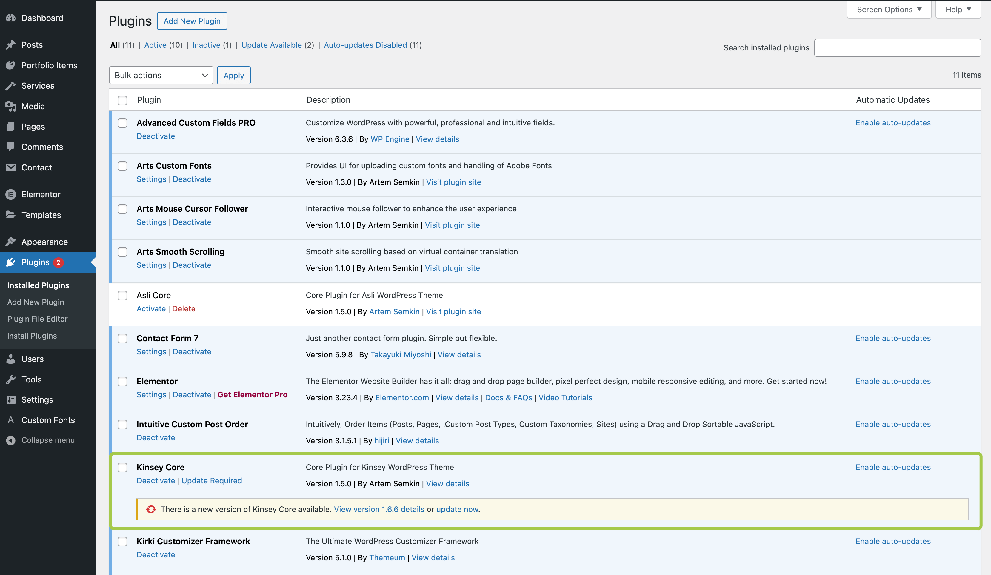 From time to time (or right after the theme update in some cases), you'll get a reminder to update Kinsey Core Plugin. The reminder could look like this: