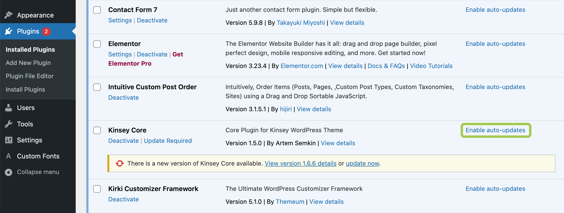 To ensure compatibility with the latest WordPress and the theme, it's recommended to turn on automatic updates for the core plugin: