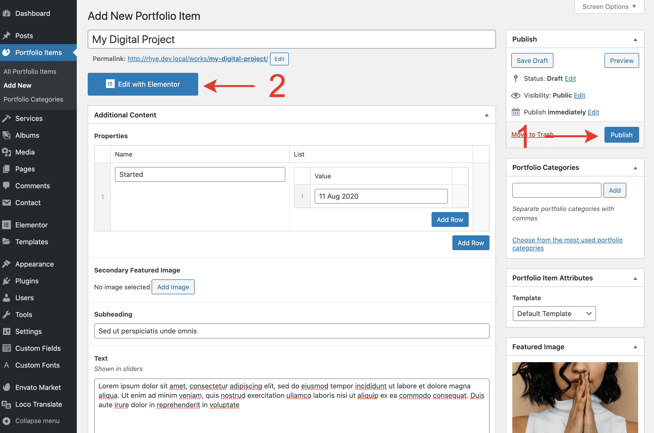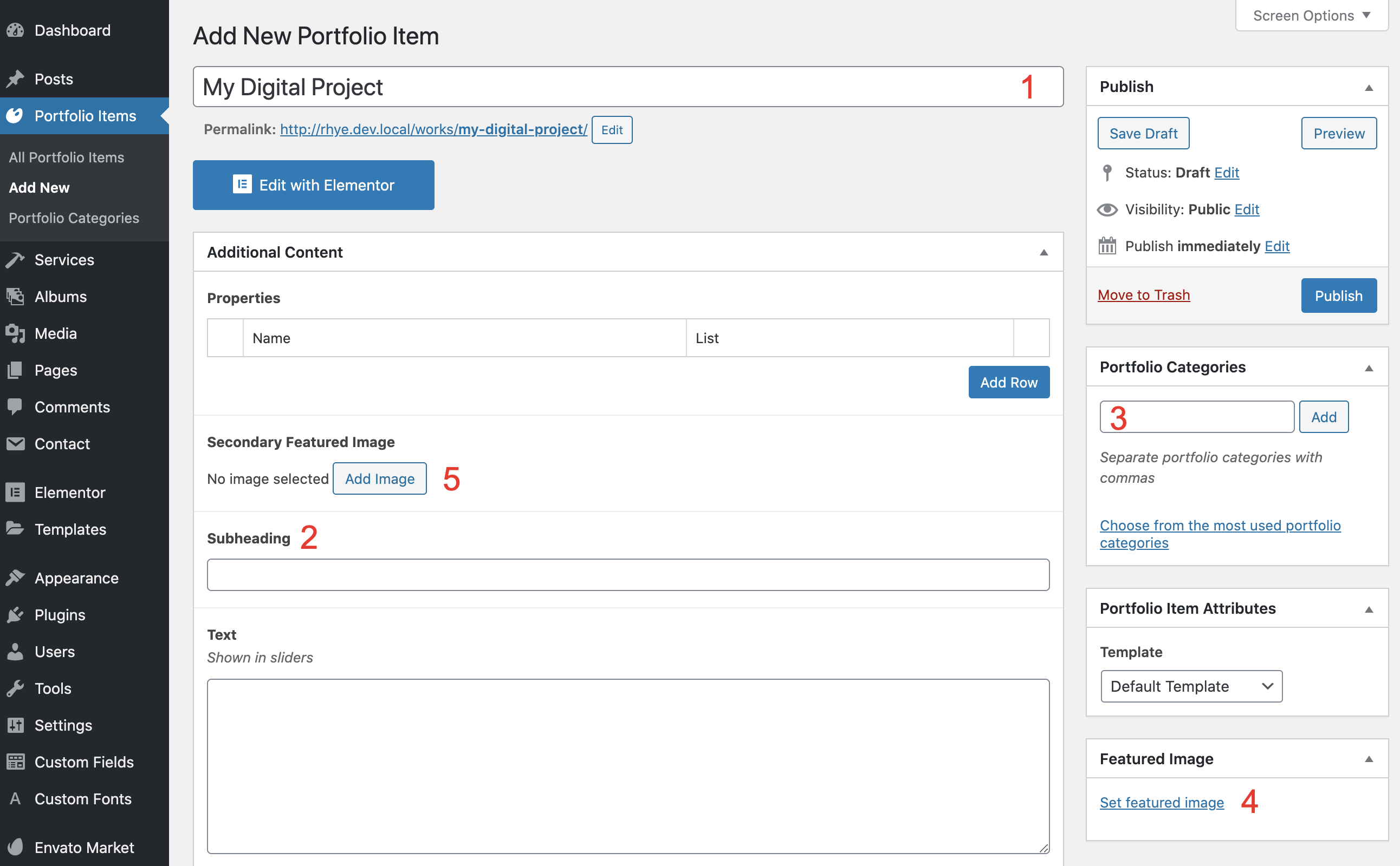 Let’s figure out everything step-by-step and create a new portfolio item from scratch.