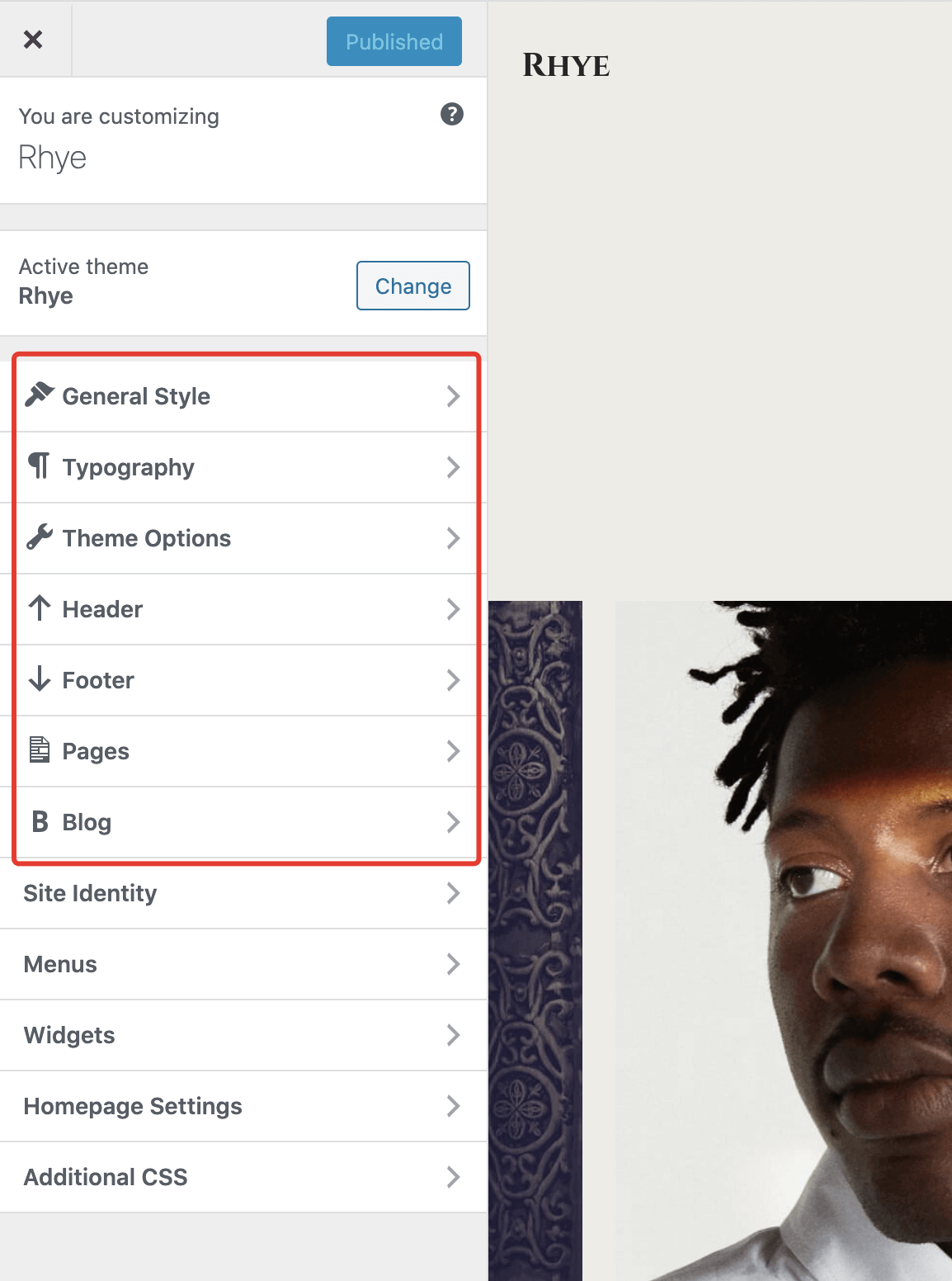 If you don’t see the additional theme panels like in the screenshot above, please check if you have the Kirki Plugin (opens new window) installed and activated. It’s required by the theme and is responsible for extending the WordPress Customizer panel.