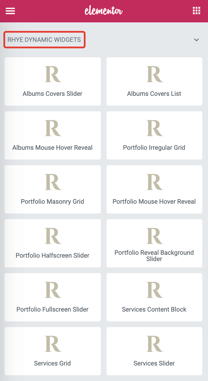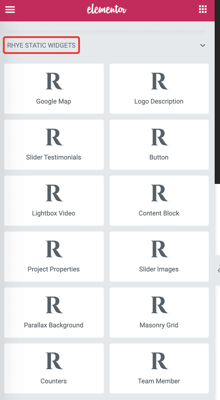 Rhye comes with custom, carefully crafted widgets that you can easily use during page building. If you scroll down the widgets panel, you will see the Rhye widgets section. But before using them, let me explain what Static and Dynamic widgets are.