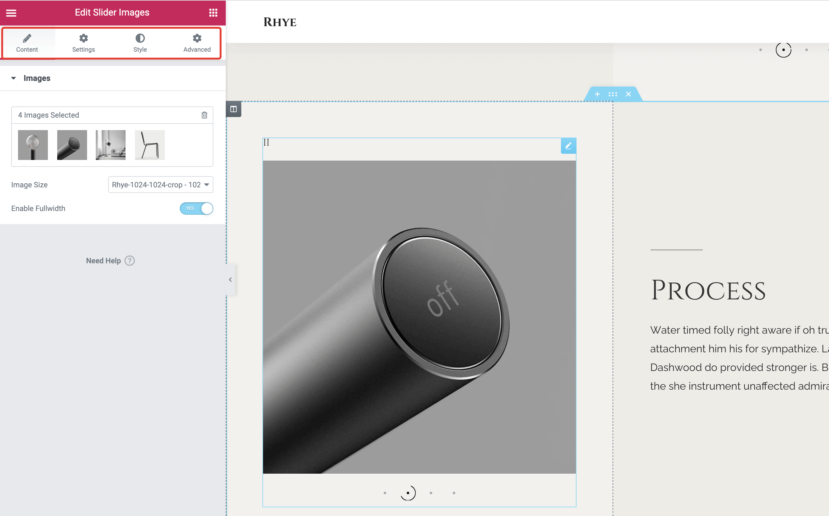Each Elementor widget has certain options you can adjust. These options vary per widget and are available in the left panel. Options are grouped into five tabs: Style, Layout, Settings, Content, and Advanced. The Advanced tab is intended for experienced users.