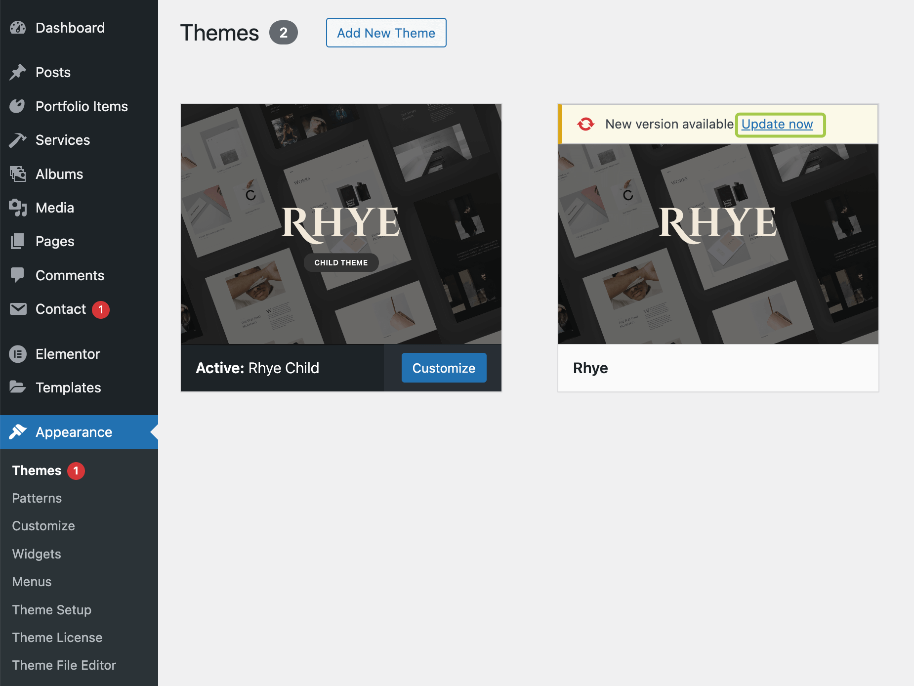 Once the license is activated, you'll receive notifications for theme updates directly in your WordPress panel: