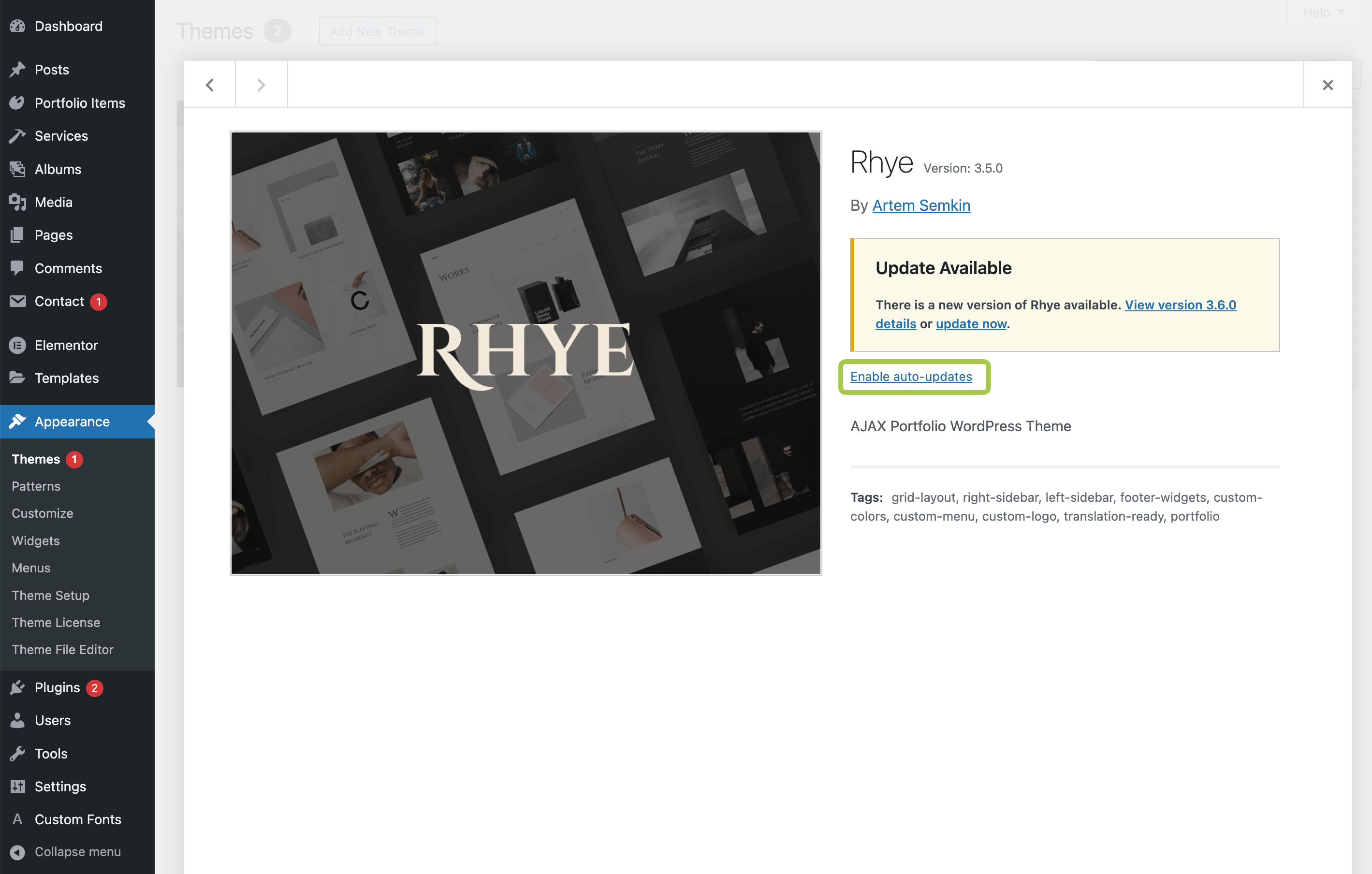 To ensure compatibility with the latest WordPress and plugins required by the theme, it's recommended to turn on automatic theme updates: