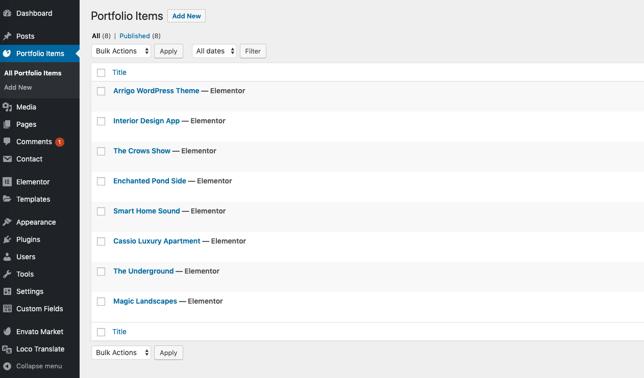 To edit portfolio items, you need to go to Admin Panel → Portfolio Items.