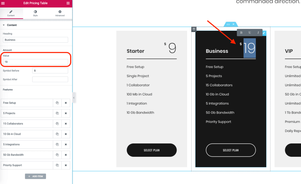 Click on any editable Elementor widget. You will see all the available options for the selected widget.