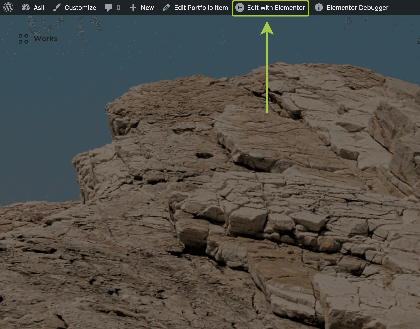 Visit any site page or post and enter the Elementor editor by clicking Edit with Elementor in the admin bar.