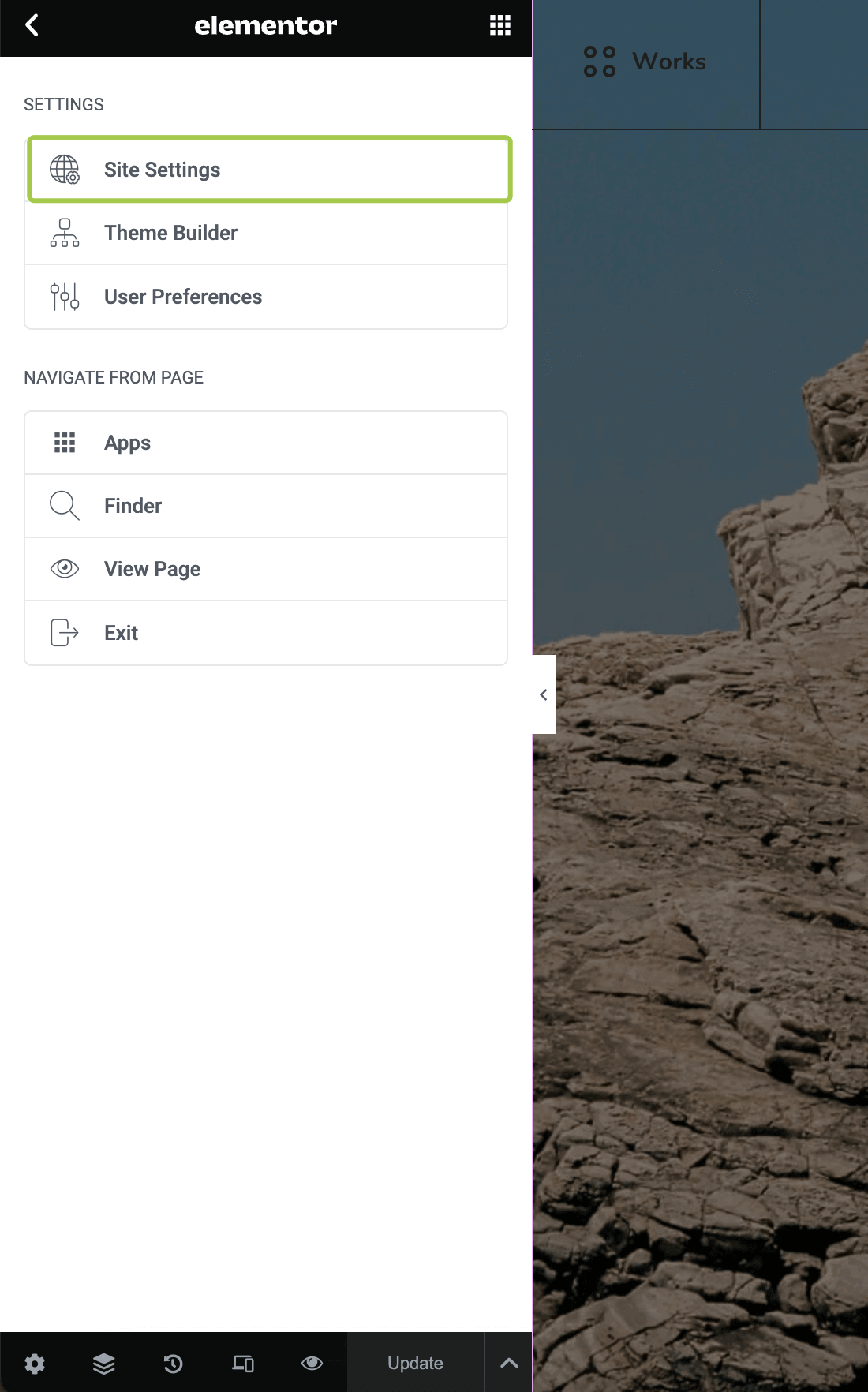 Go to the Site Settings panel.