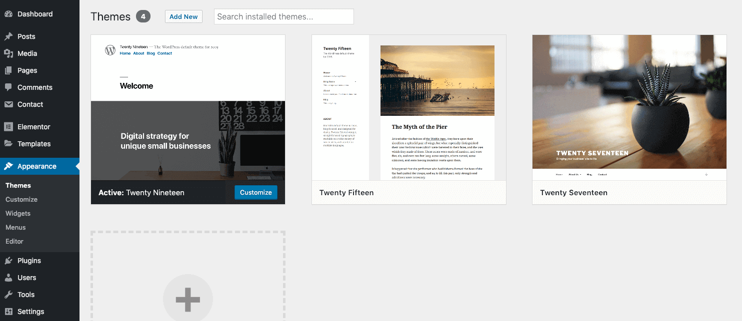 Being in the WordPress panel, navigate to Appearance → Themes and click Add New.