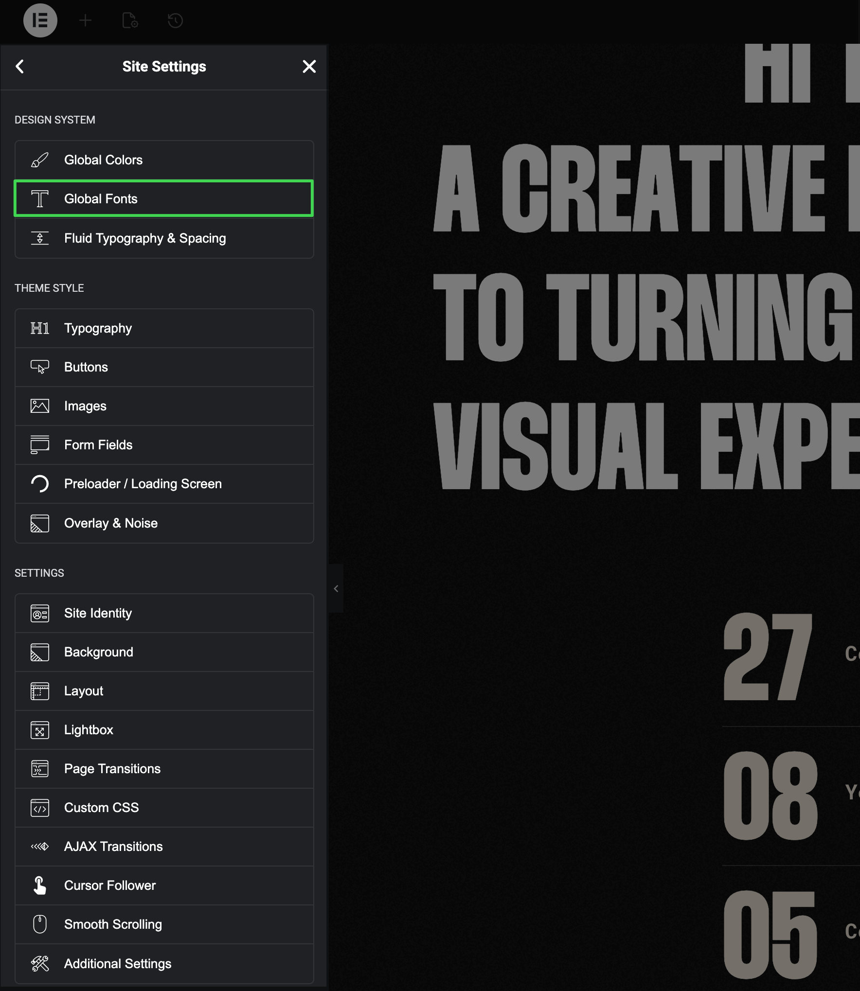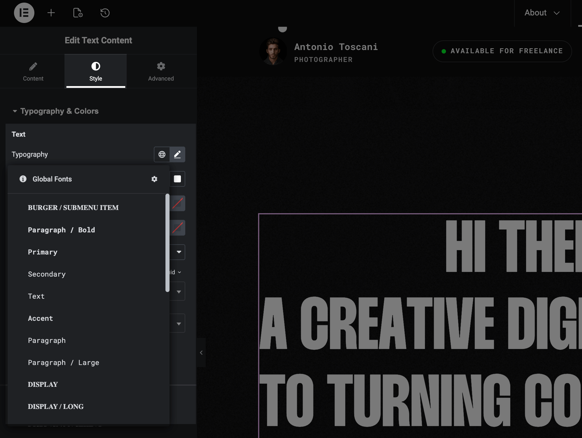 Using Global Fonts ensures your site stays consistent. Update a font preset once, and it changes everywhere that preset is used.