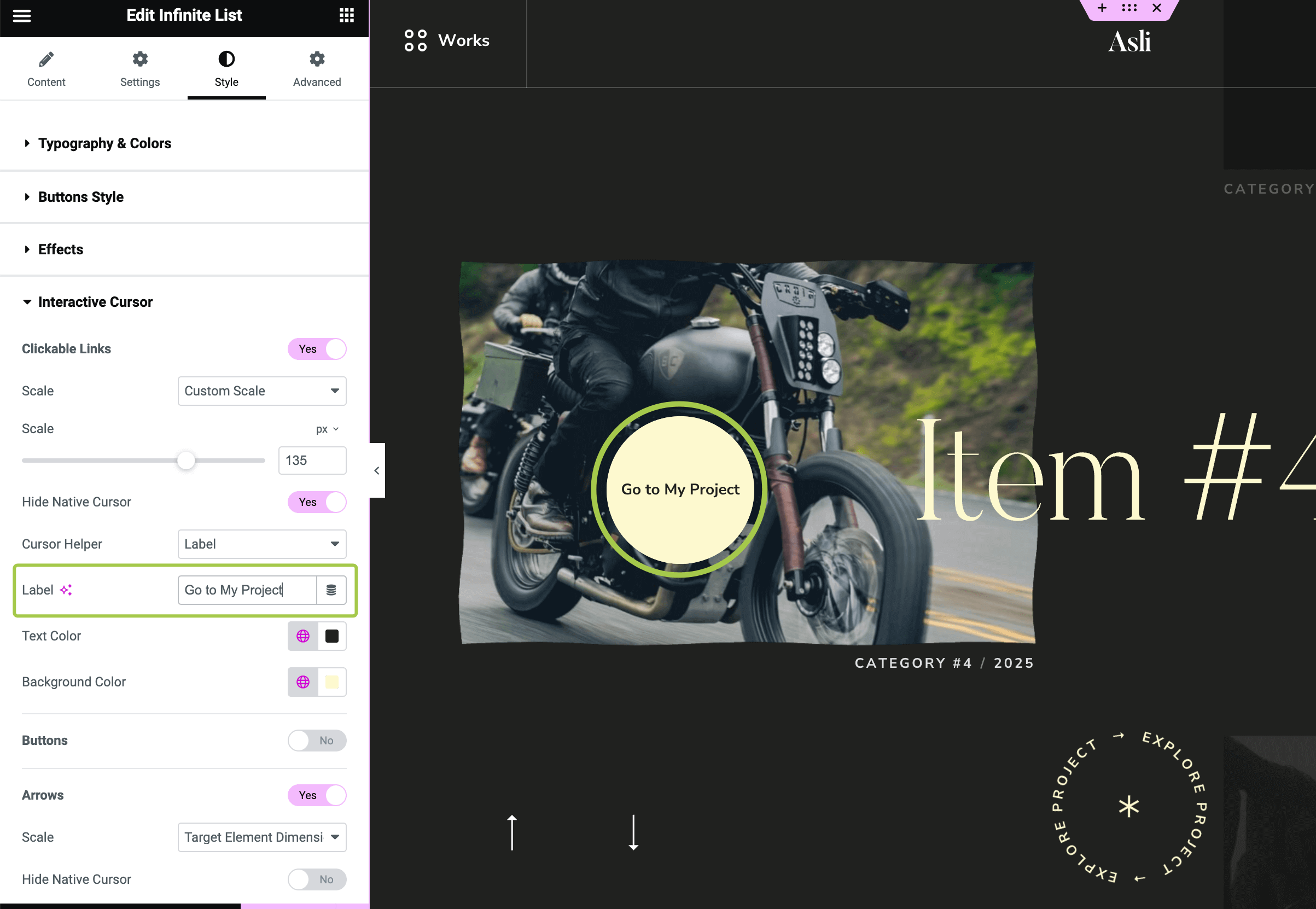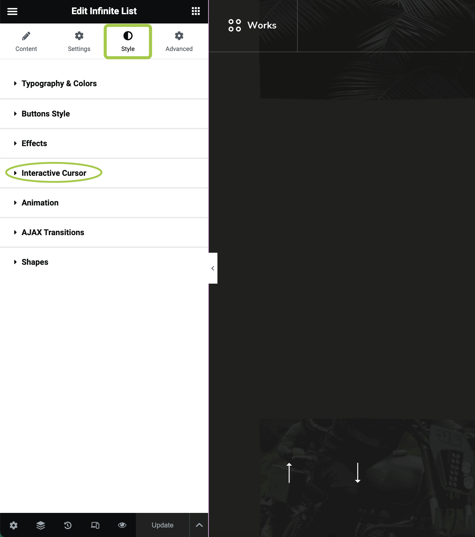 To modify cursor interactions, go to the Style tab and expand the Interactive Cursor section.
