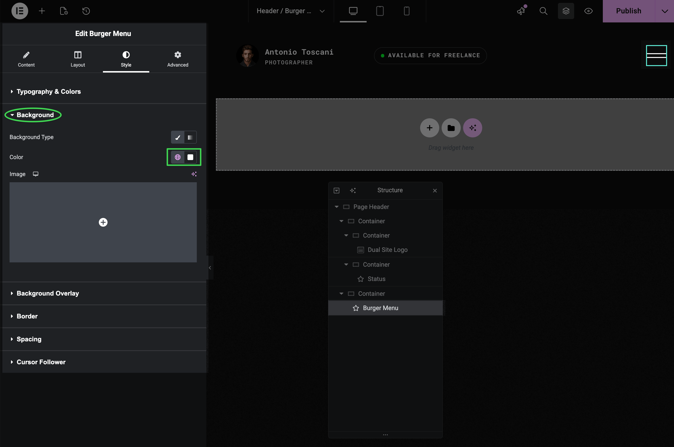 | Burger Menu widget | Navigation that opens in a fullscreen overlay |