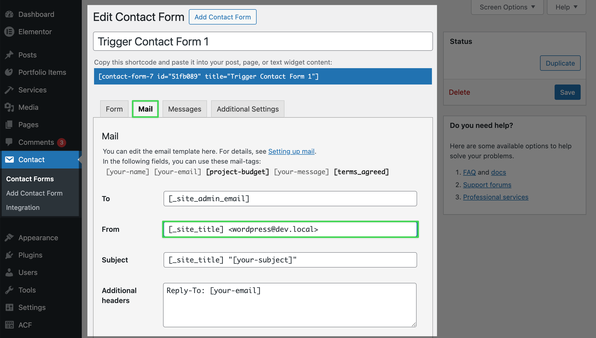 You can add or remove fields, change labels, and customize settings in the Form tab. For more options, see the Contact Form 7 documentation.