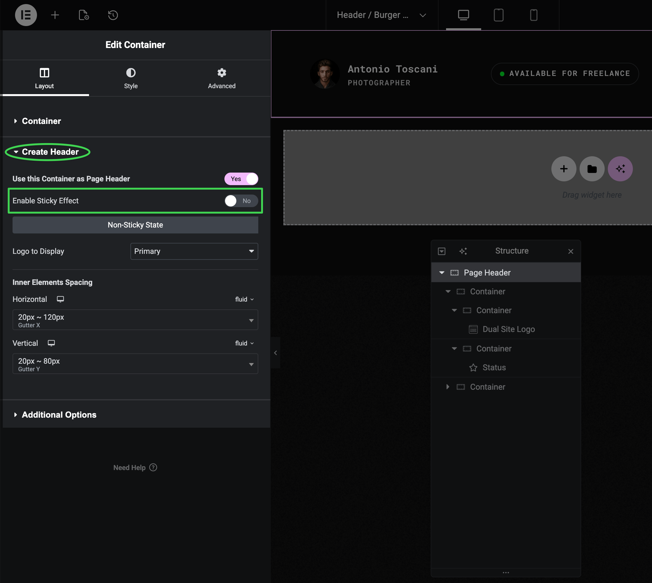 | Enable Sticky Effect | Makes header stick to top when scrolling |