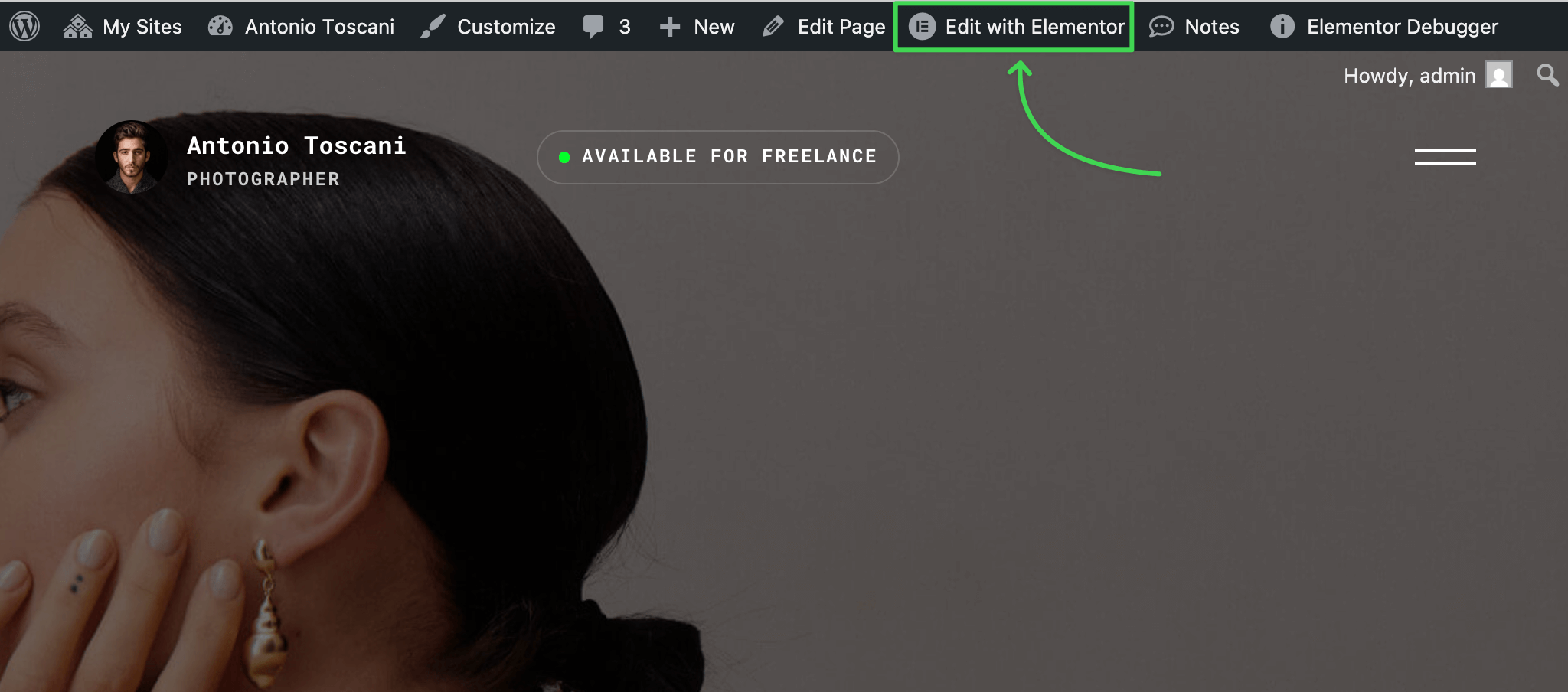 Visit any site page or post and enter the Elementor editor by clicking Edit with Elementor in the admin bar.