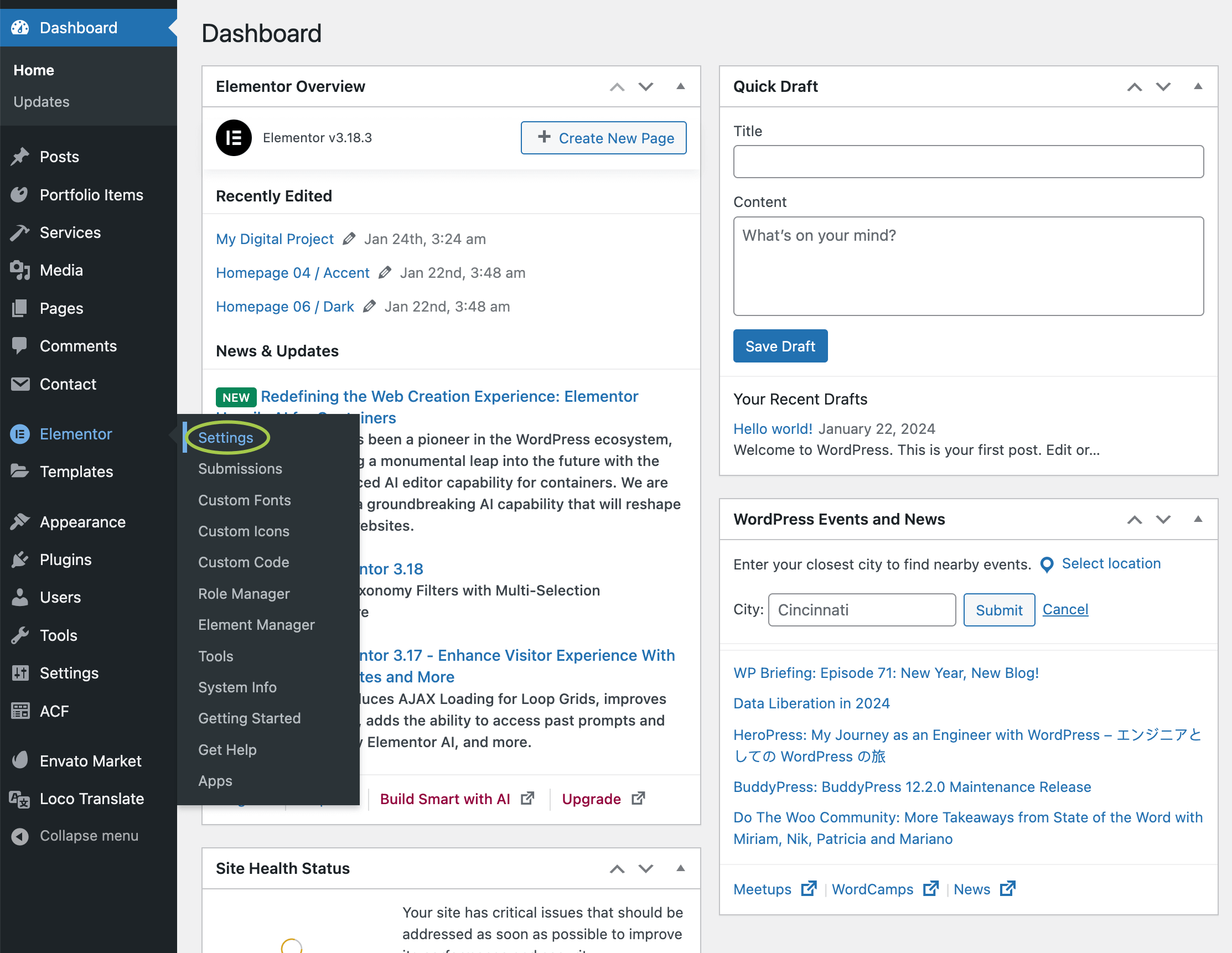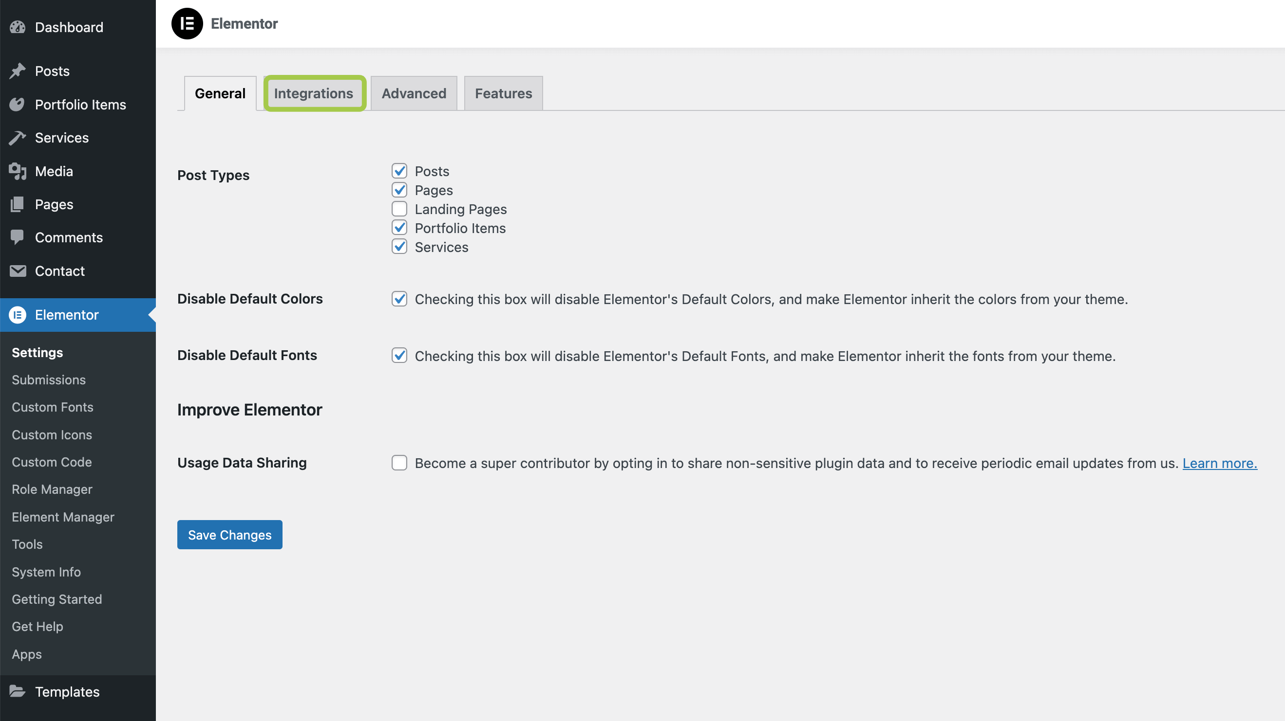From the admin panel, go to Elementor -> Settings